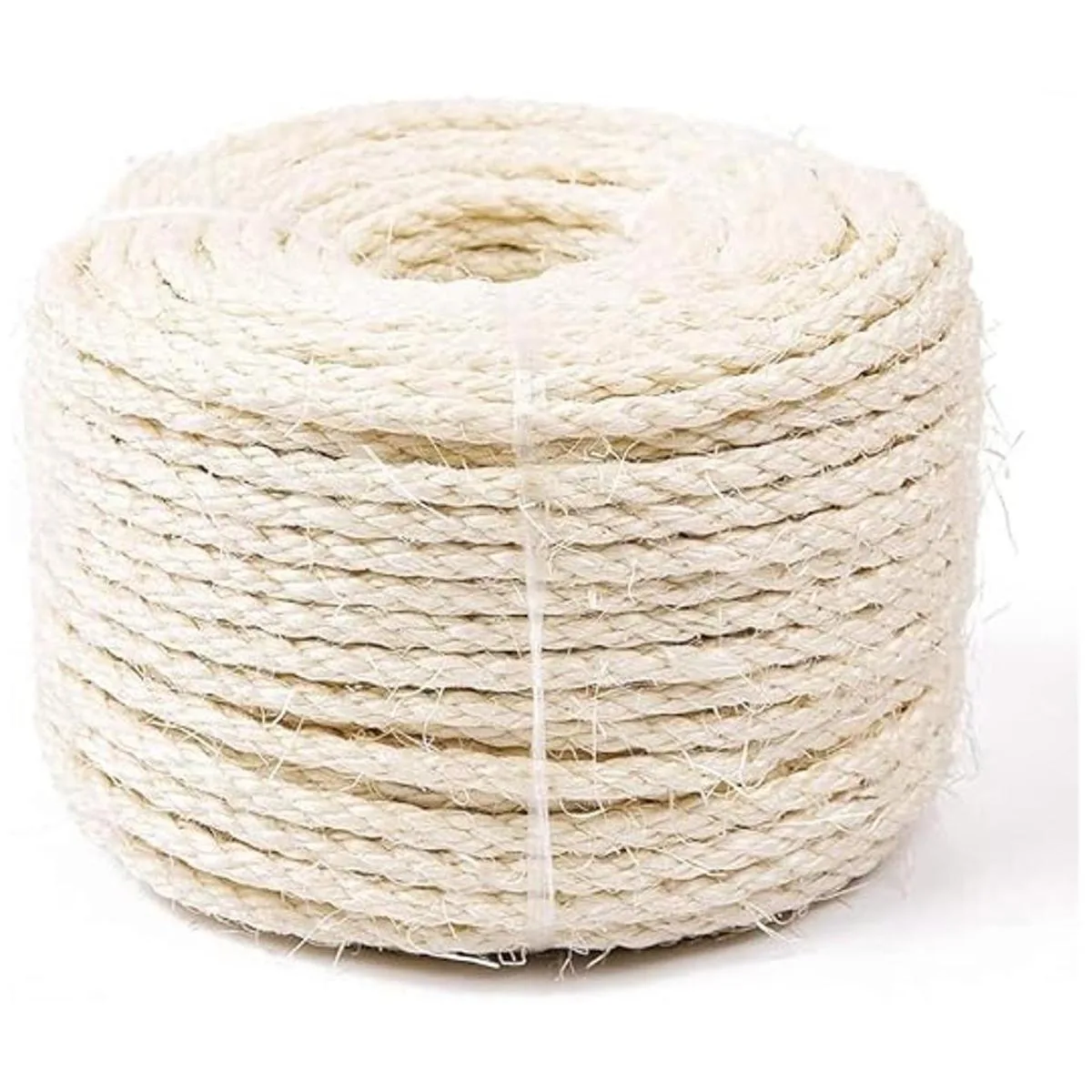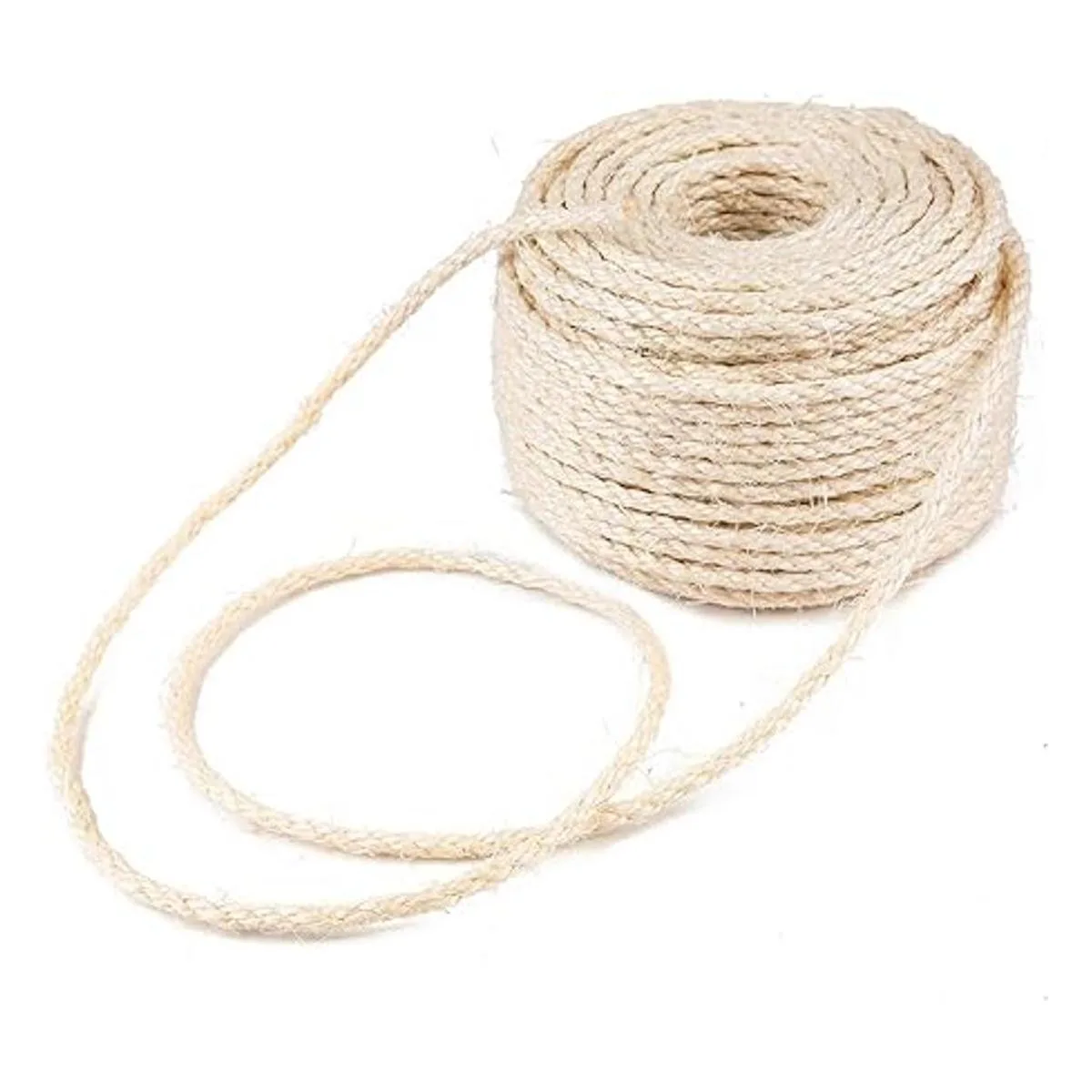 Yangbaga Cuerda de sisal natural para reemplazo de árboles y postes para que los gatos rasguen, cuerda de cáñamo para reparaciones, reconstrucciones o rascador de bricolaje, 6 mm de diámetro, viene con una bola de sisal