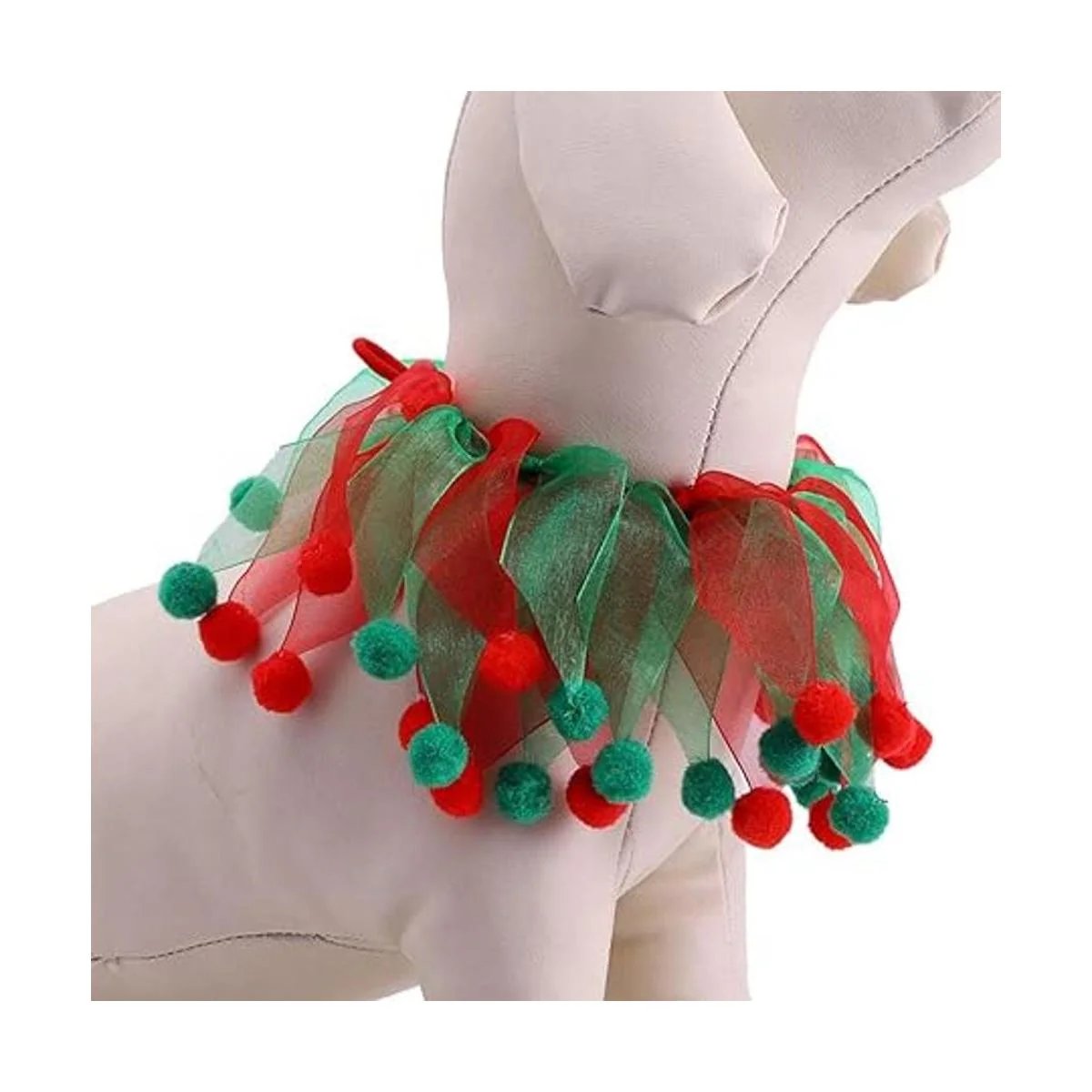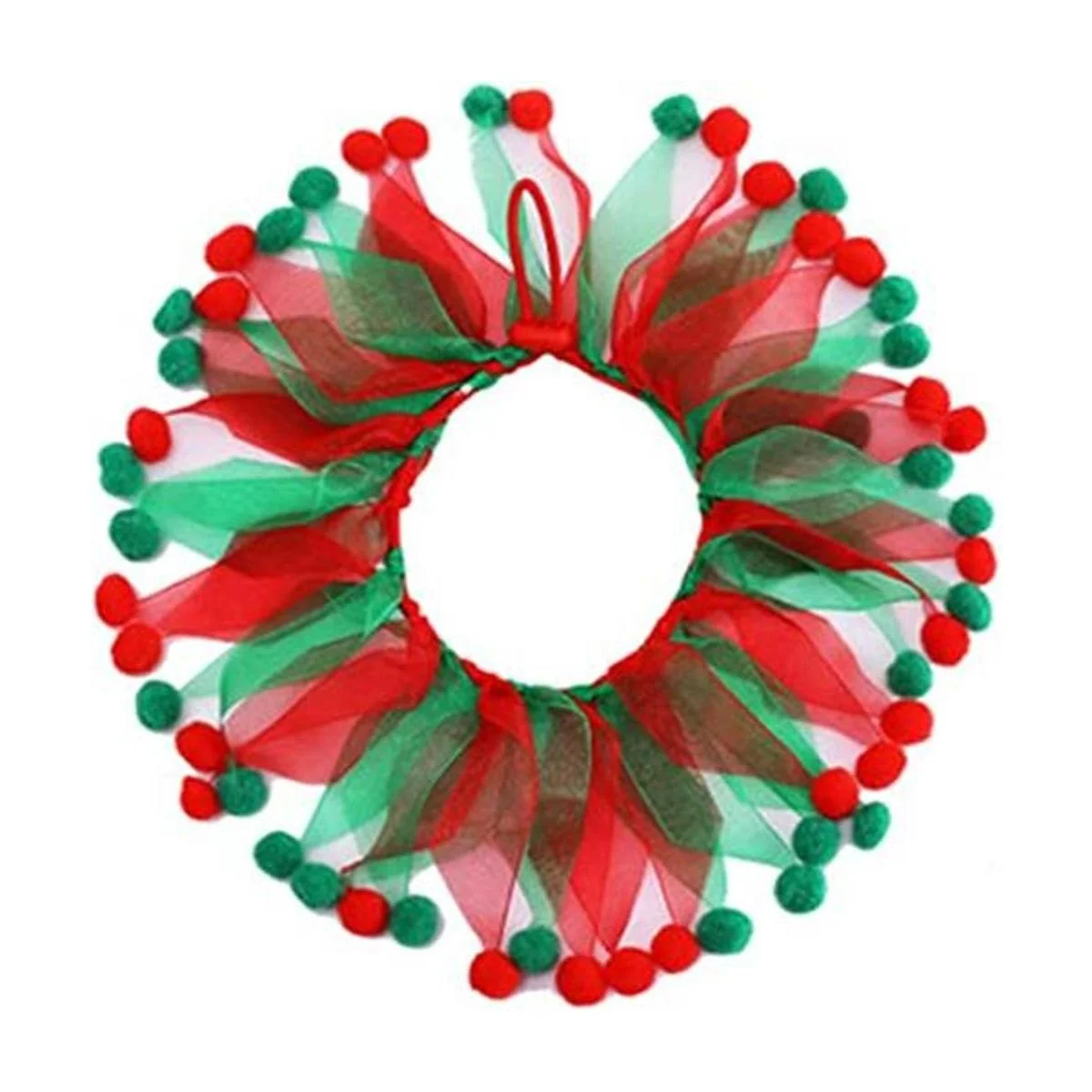 YANQINQIN Collar de Navidad para mascotas con cuello rojo y verde ajustable para gato y perro 17.7 in
