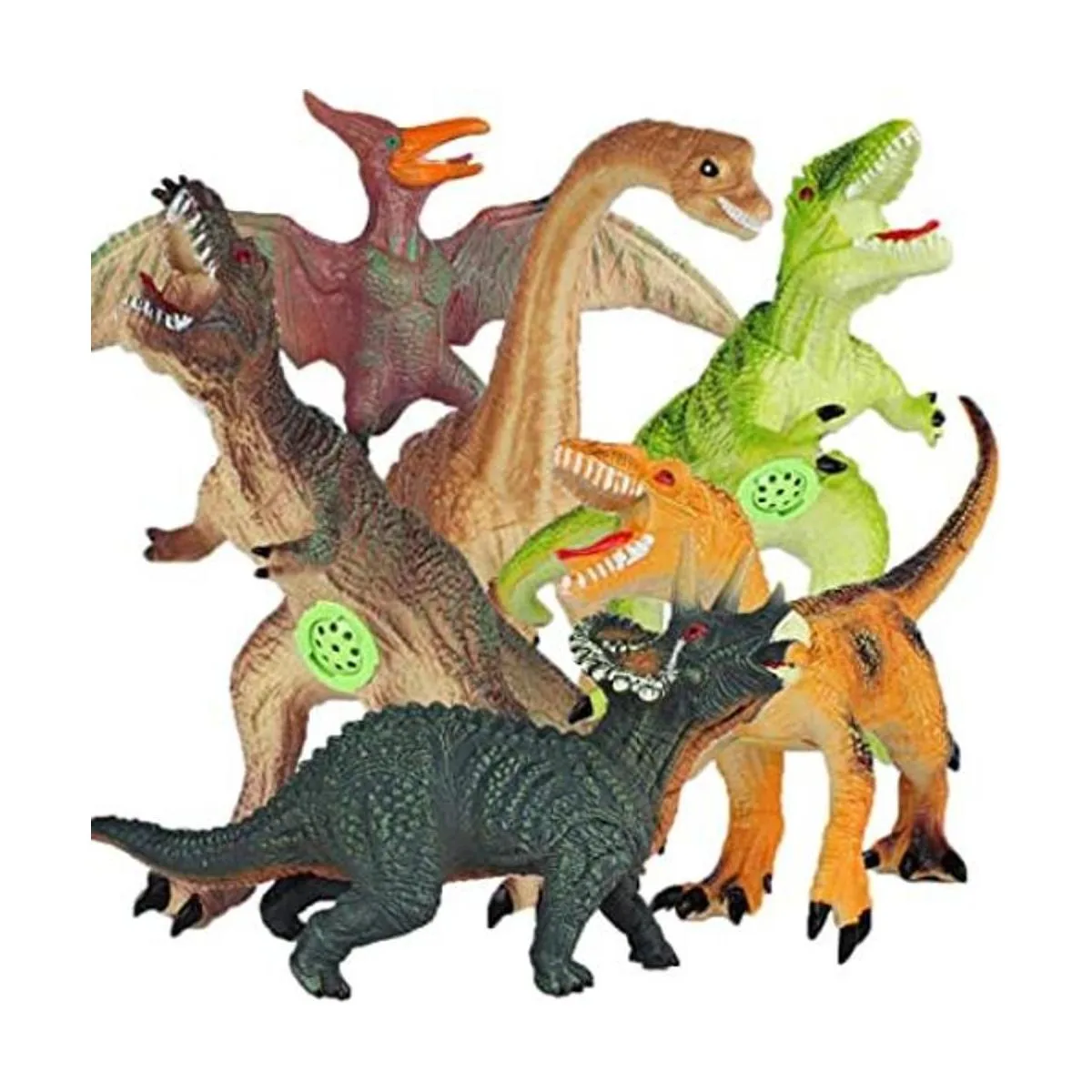 Paquete de 6 juguetes de dinosaurio El juguete realista de dinosaurio con juegos de sonido incluye Brachiosaurus de 15 pulgadas, TRex de 13.5 pulgadas, Giganotosauru, Pterosauria y Velociraptor. Triceratops de 12.5 pulgadas. Son juguetes tan animados y adecuados para niños y niñas.