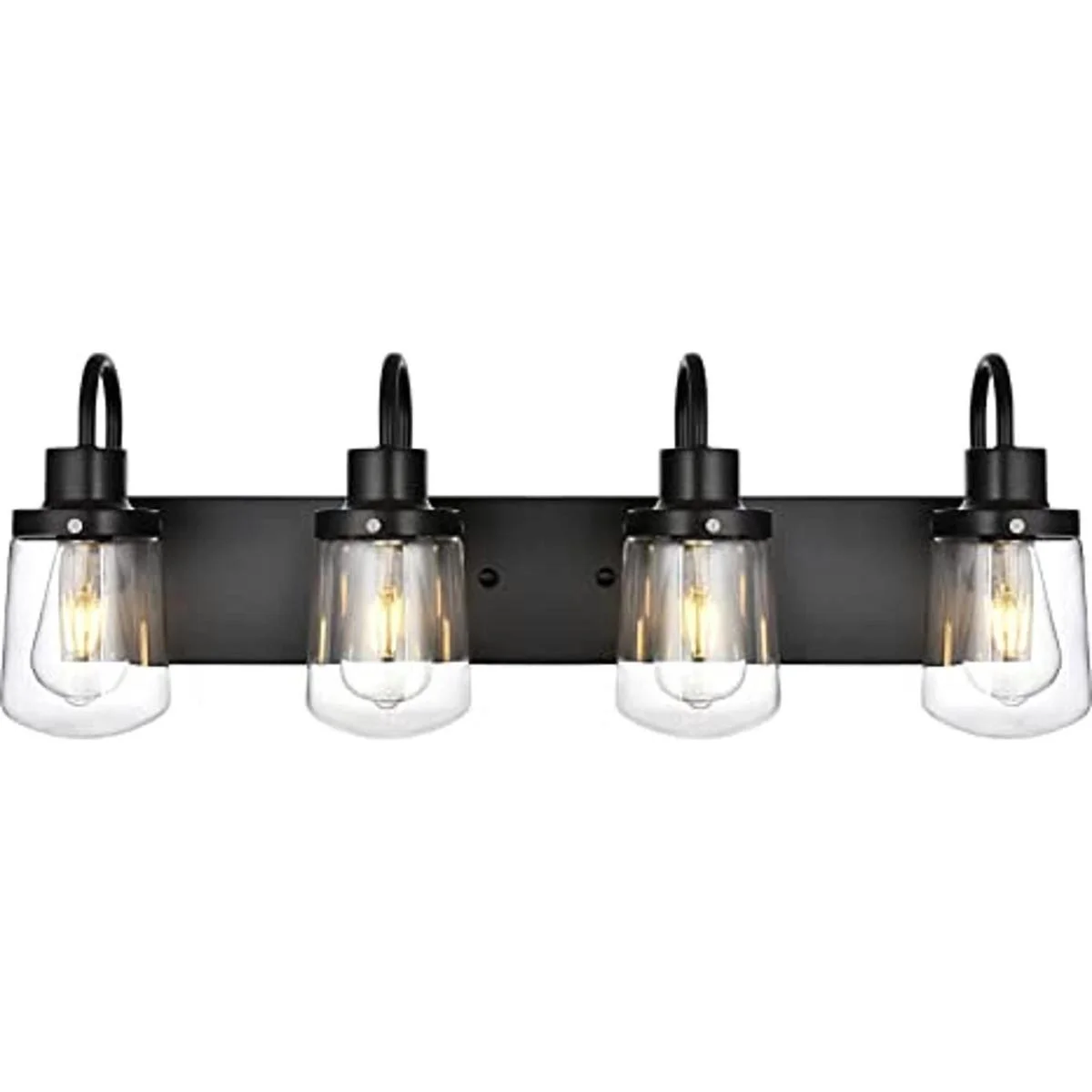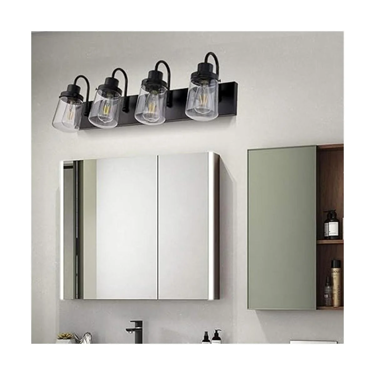 YAOHONG Lámpara moderna de tocador de baño con 4 luces en negro, lámpara de pared de granja con pantallas de vidrio transparente, lámpara de pared interior