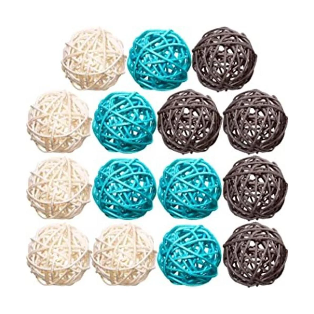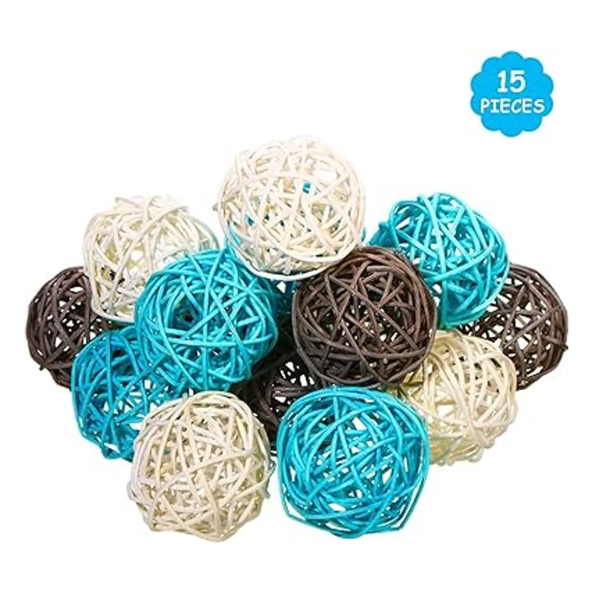 Yaomiao 15 piezas de bolas de ratán decorativas para manualidades, fiestas, día de San Valentín, decoración de mesa de boda, baby shower, accesorios de aromaterapia, 1.8 pulgadas azul claro, gris blanco