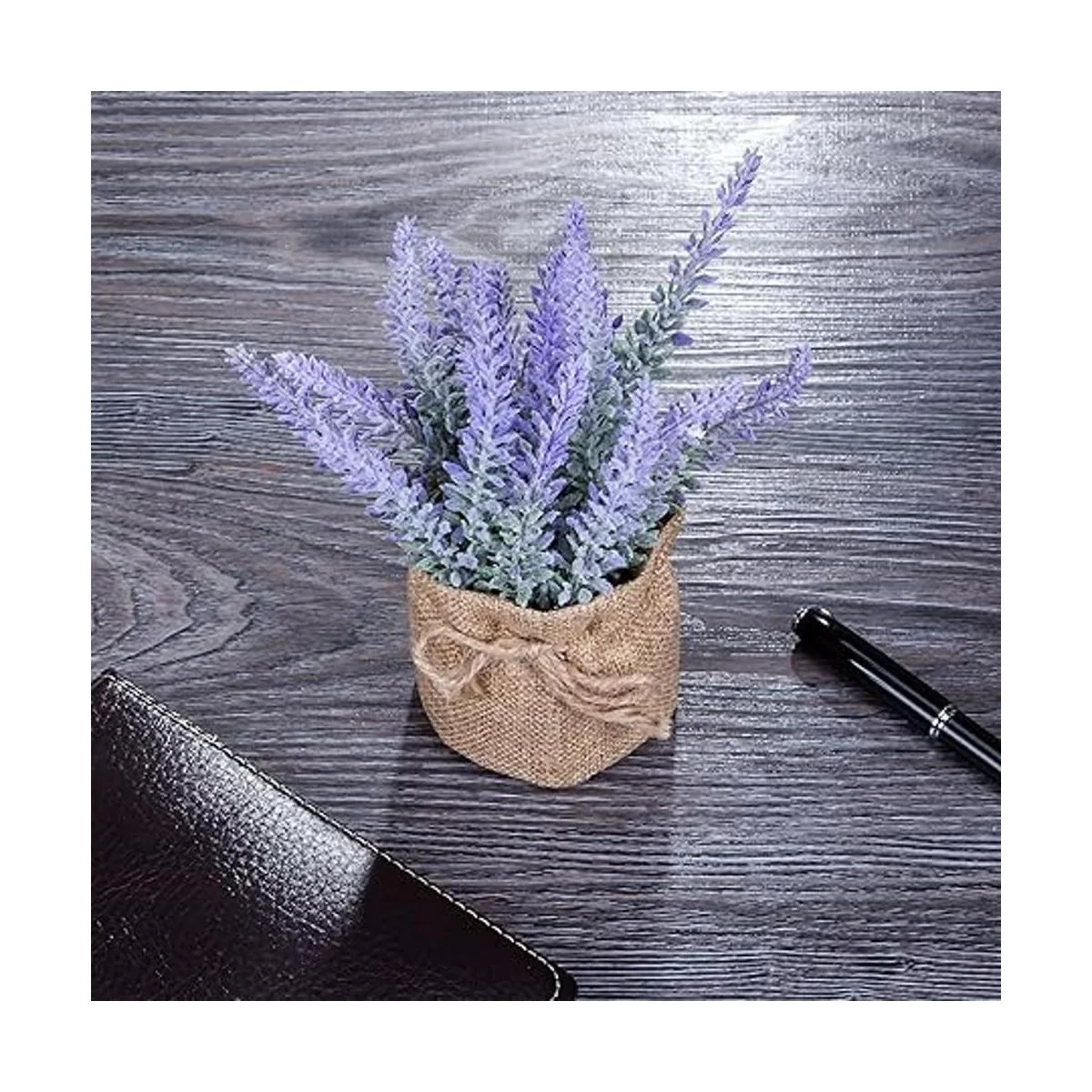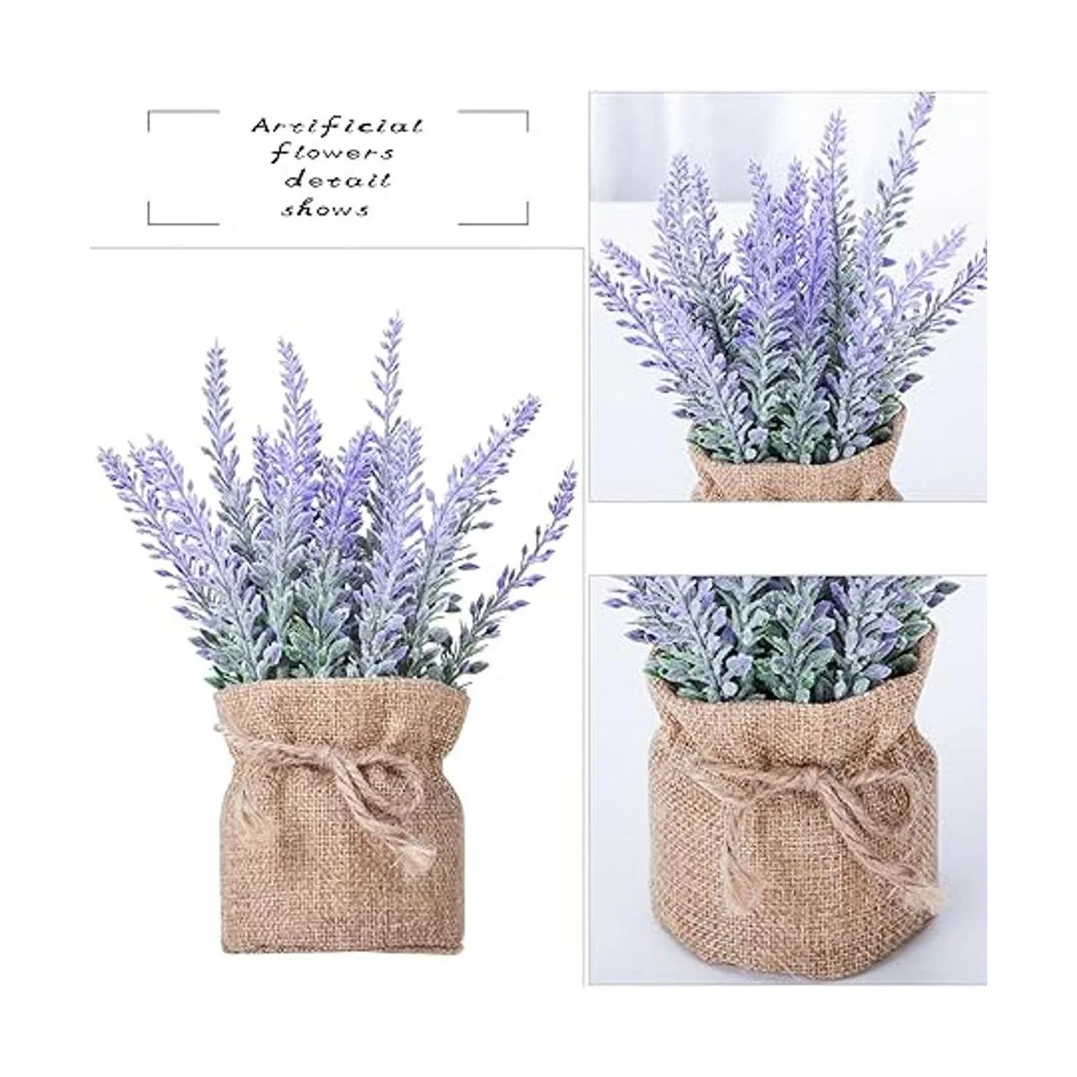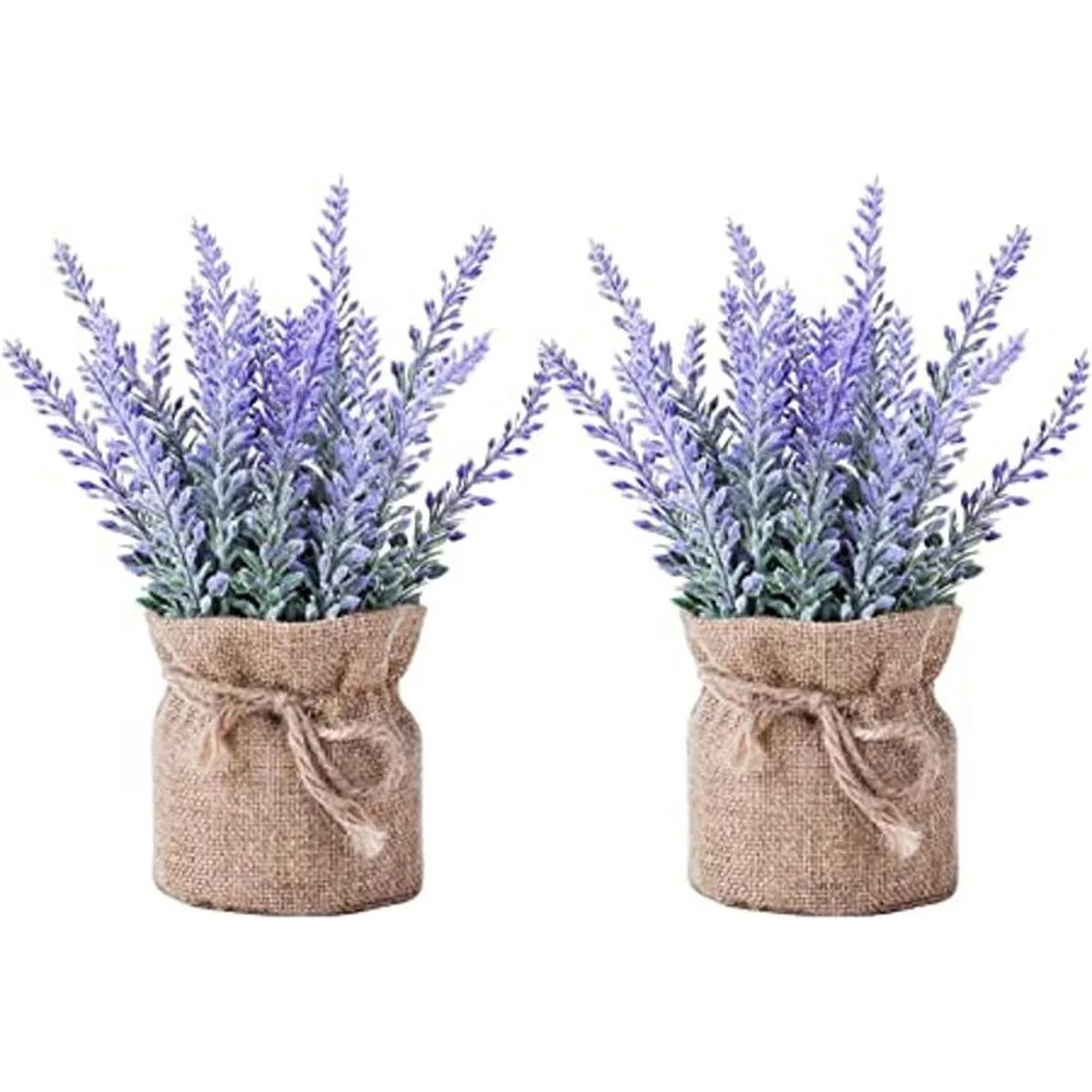 YAPASPT Paquete de 2 flores pequeñas de arpillera de lavanda en maceta, plantas artificiales y flocadas encantadoras moradas para decoración de mesa cálida y amorosa decoración de Navidad