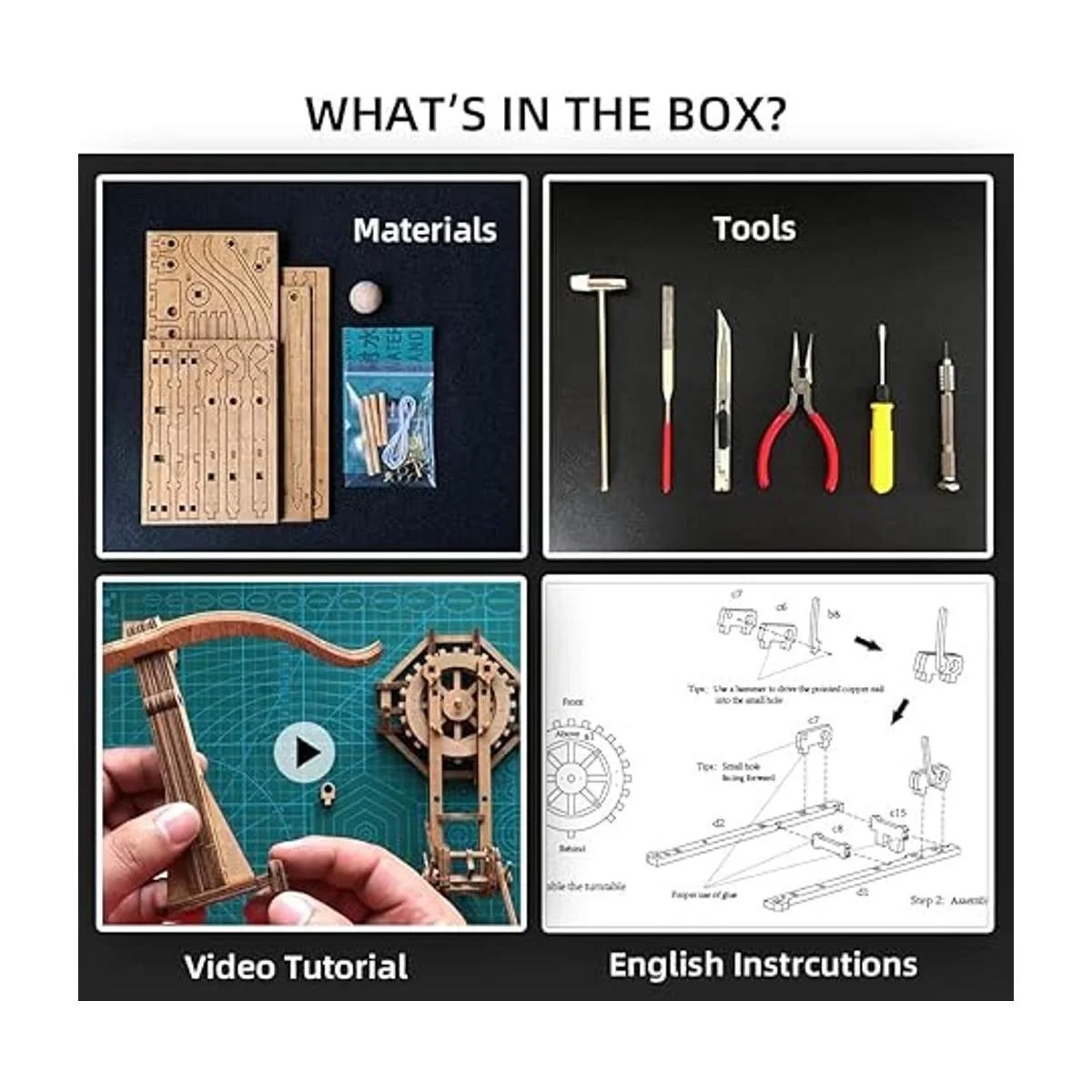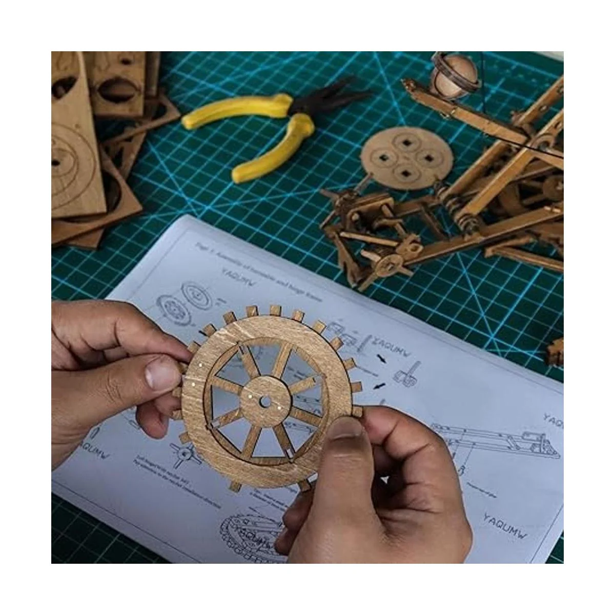 YAQUMW Asedio de ballesta ajustable, catapulta de carro antiguo, maquinaria de lanzador de piedras, 3D, rompecabezas de madera, kits de modelo de mesa, proyectos de tallo para adultos, juguete de escritorio, regalo ideal