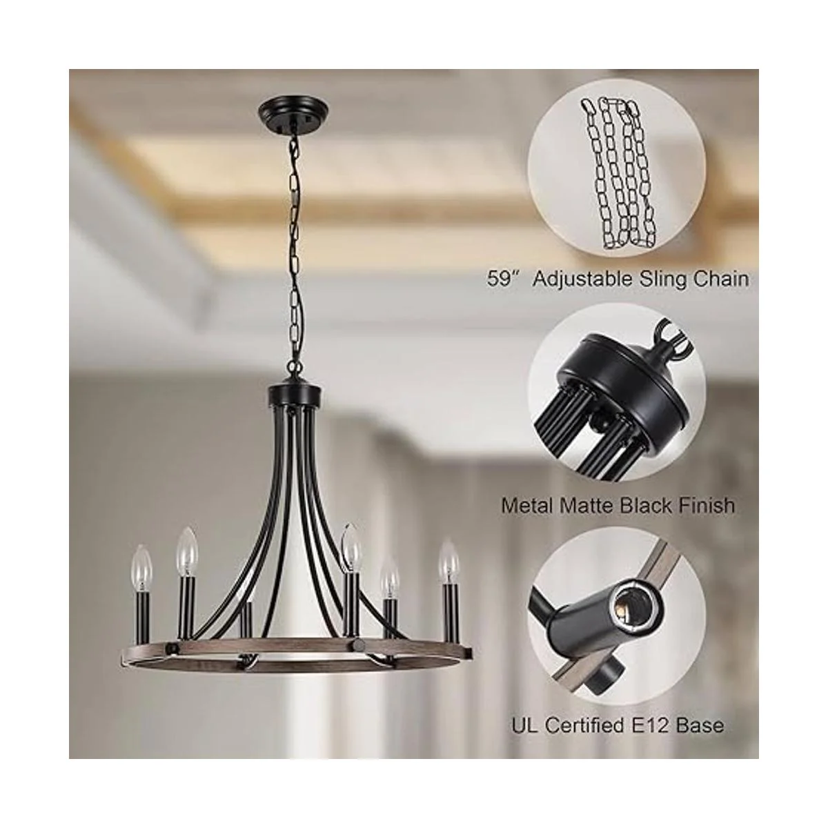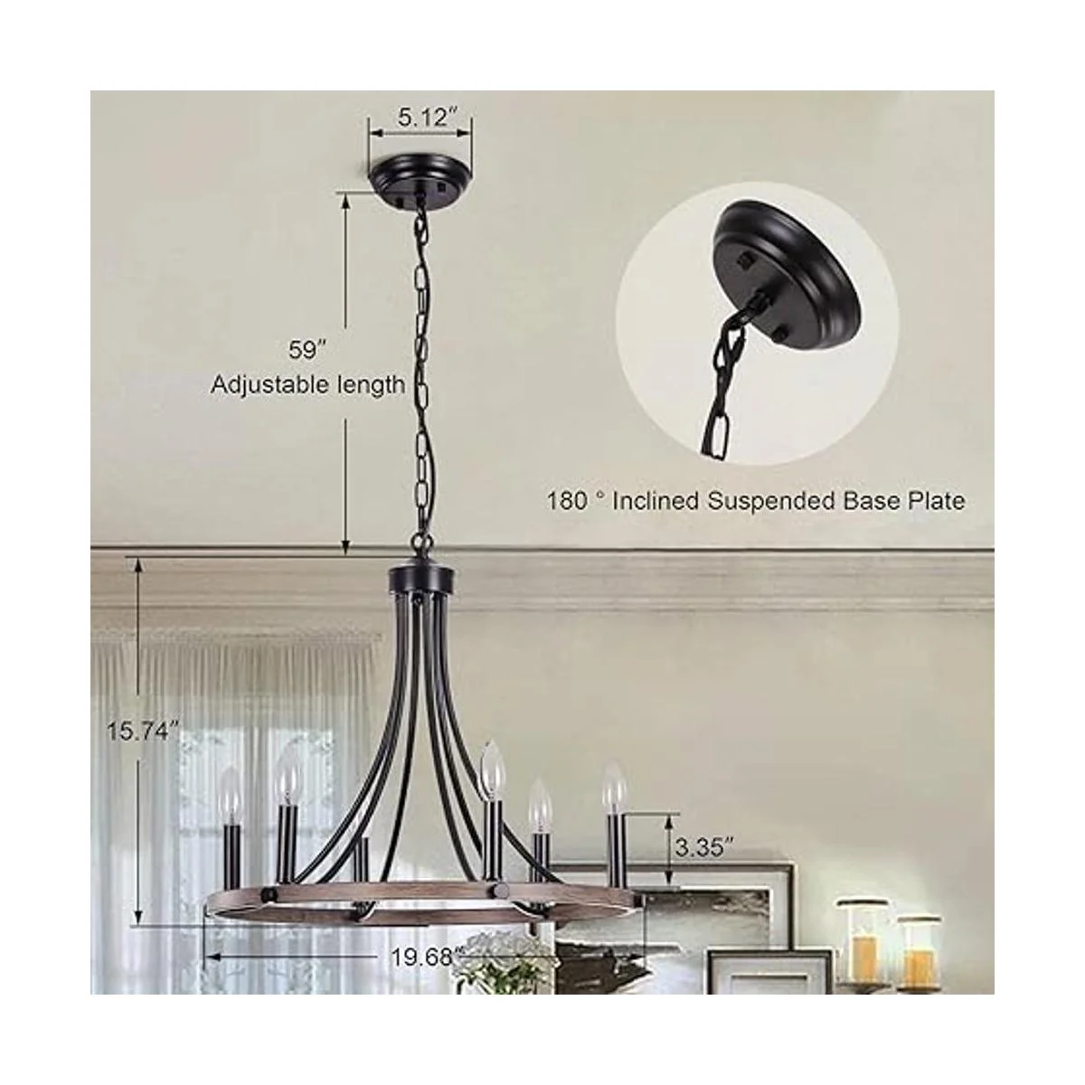 Yarlkav Candelabro de rueda de carro para comedor, lámpara de granja negra, 6 luces, lámpara colgante redonda, lámparas colgantes rústicas para cocina, isla vestíbulo, pasillo