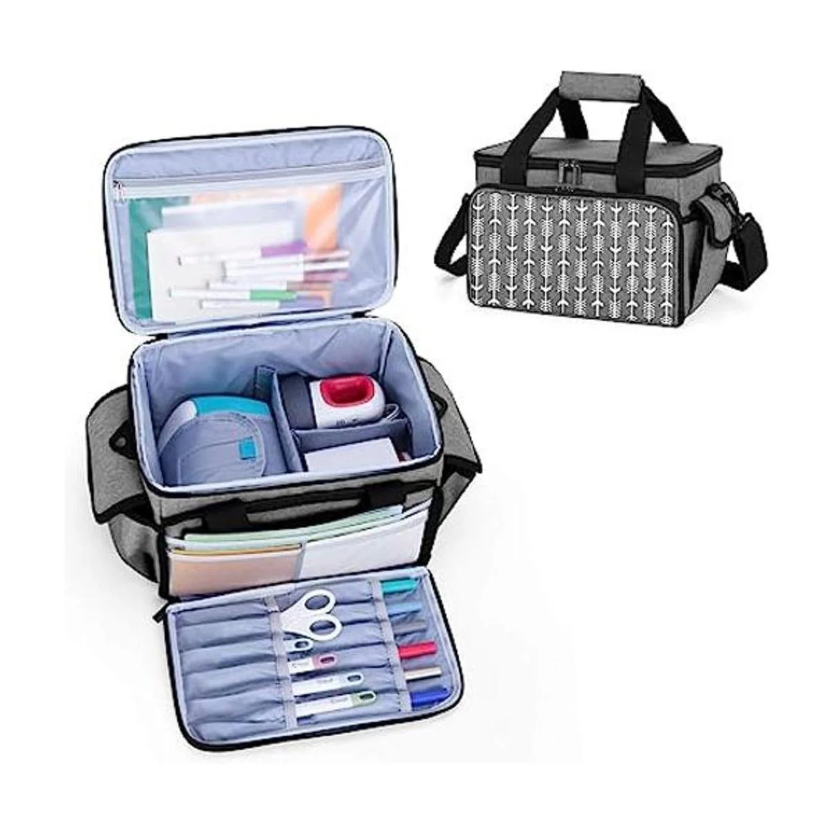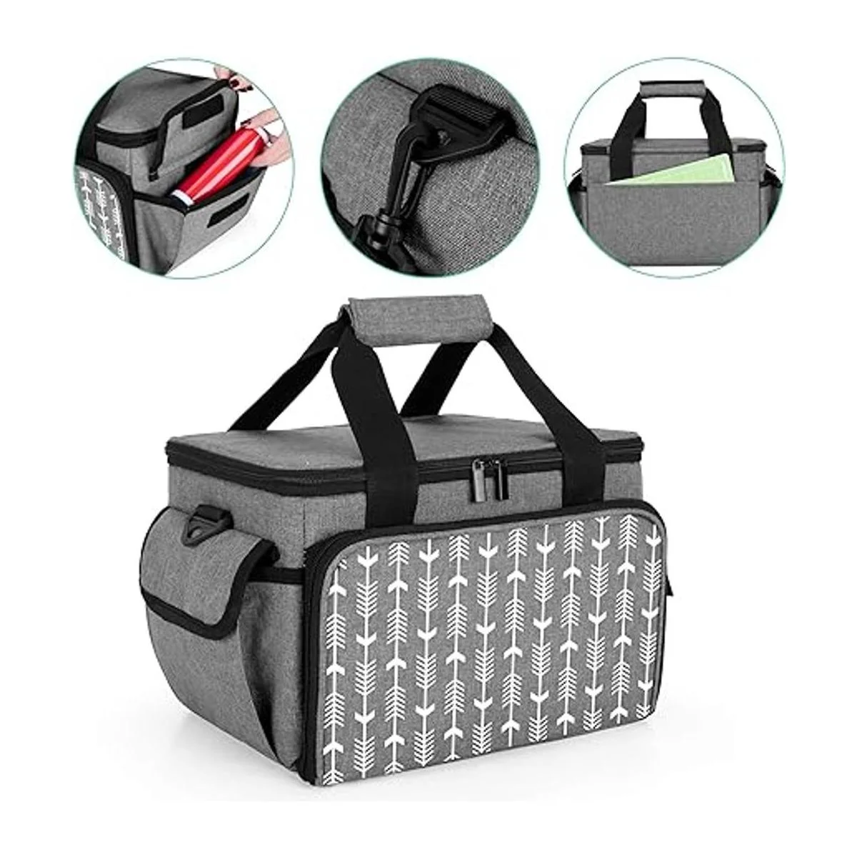 YARWO Estuche de transporte compatible con Cricut Joy and Easy Press Mini, bolsa de almacenamiento para bolígrafos de manualidades y otros juegos de herramientas, gris con flecha