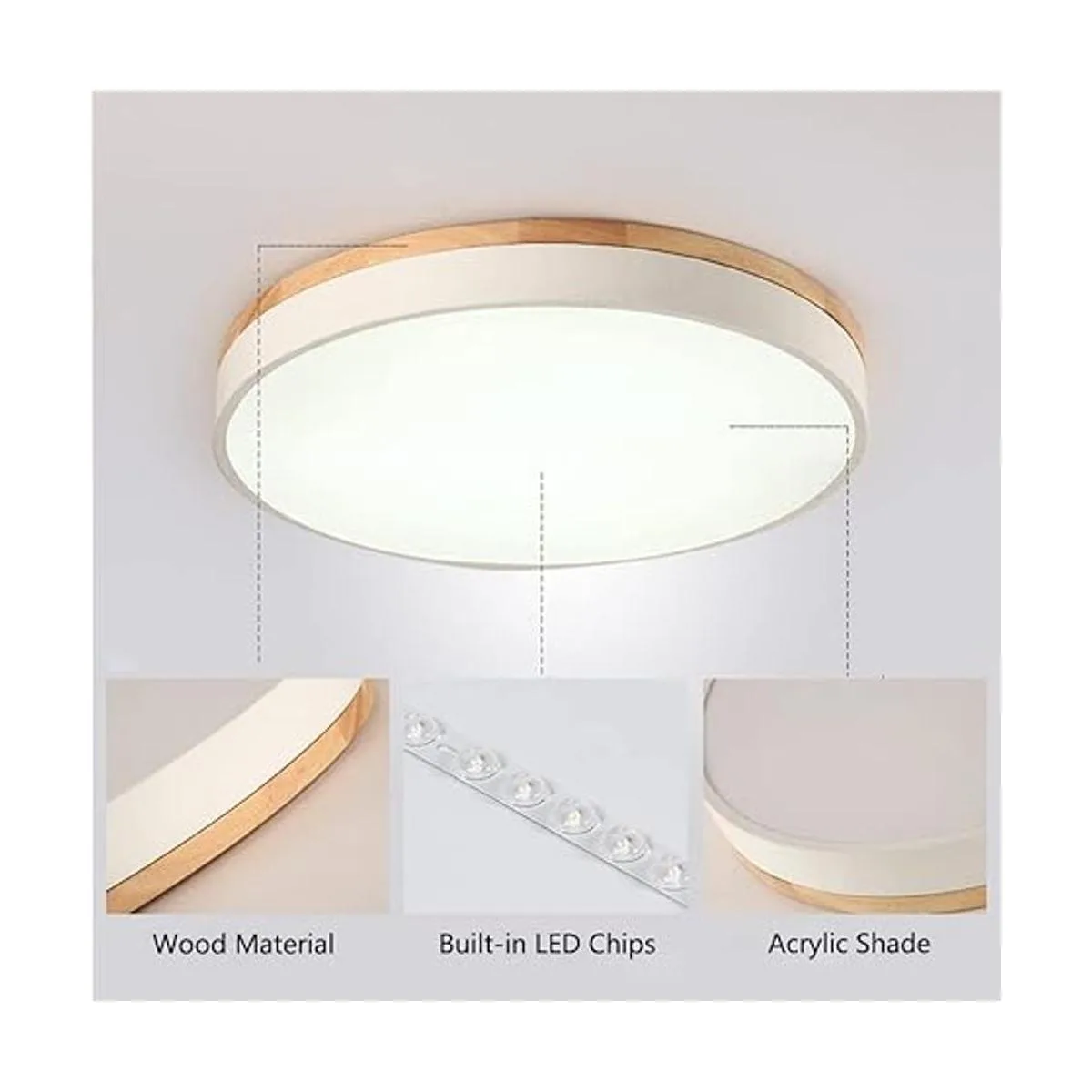 Material y diseño contemporáneo: la pantalla está hecha de acrílico. La altura ultrafina, el diseño circular y el material de madera texturizada muestran las características de la lámpara de techo de muchas maneras. Es una buena opción para tu hogar.