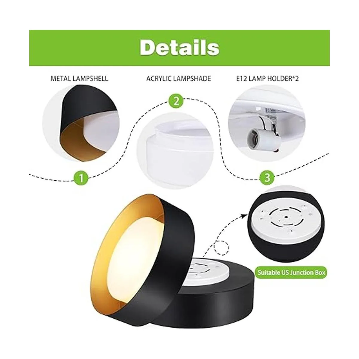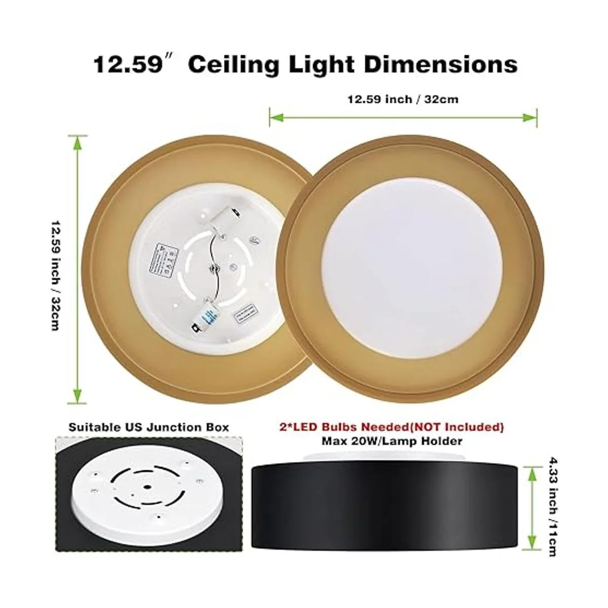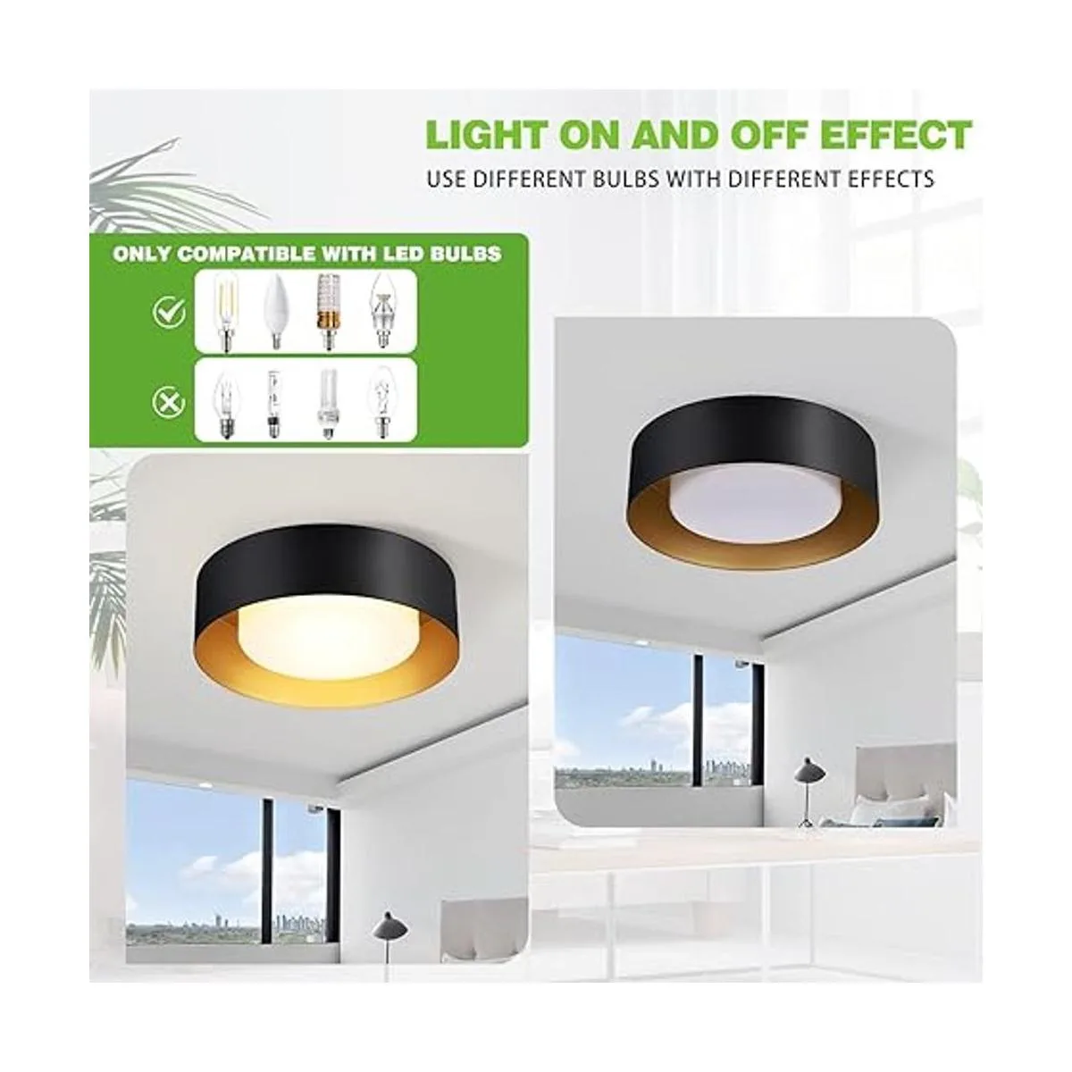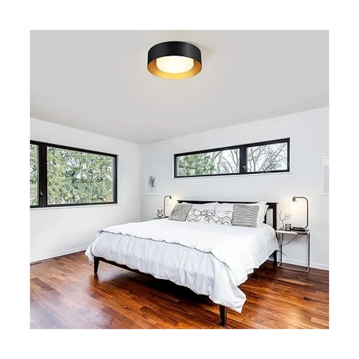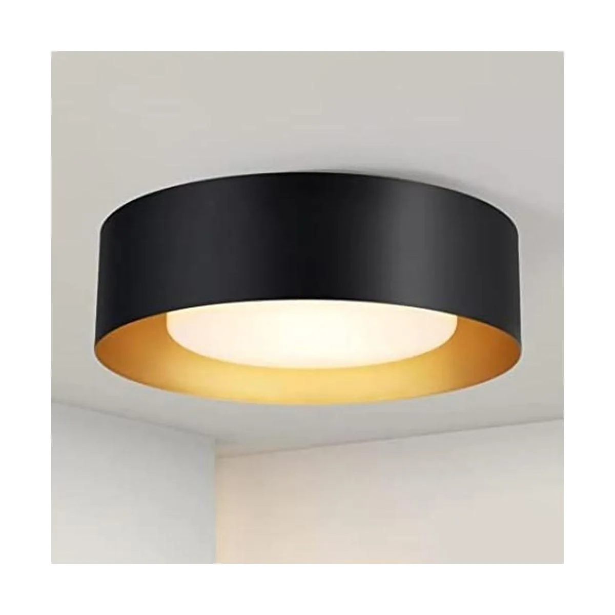 Yasince Modernas luces de techo negras y doradas, iluminación de techo redonda de tambor minimalista, lámparas de metal cerca del techo para dormitorio, comedor, baño, pasillo, sala de estar, 12.5 pulgadas