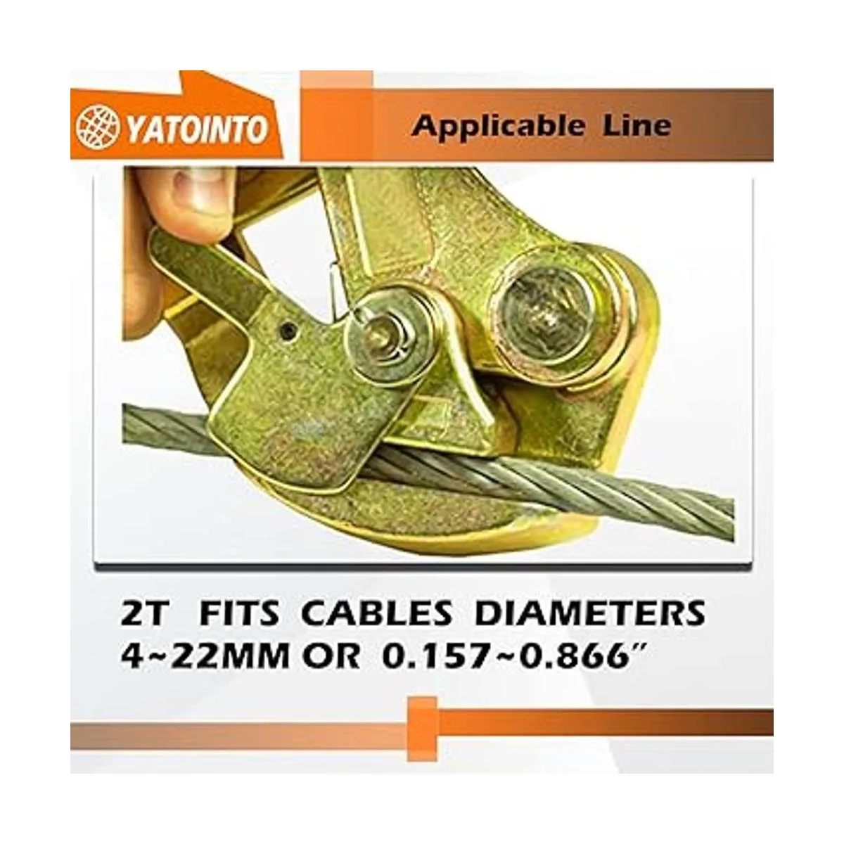 YATOINTO Extractor de alambre de acero con agarre de cable de 2 toneladas, herramienta extractora de cables para cuerda de alambre de 4 a 0.866 in, carga máxima de 2200 libras, herramienta de ajuste multifuncional con pestillo oscilante 2T