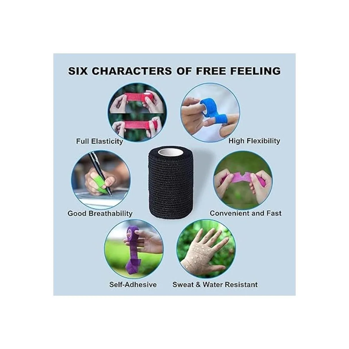 Self Adhesive Bandage: Our elastic cohesive wrap Bandage can be selfadhesive, these bandages will not slip, meaning you wont have to frequently readjust them. Unlike nonadhesive bandages, selfadherent tape does not require clips and pins to stay in place.