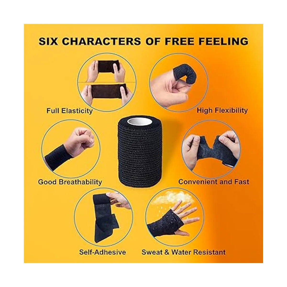 Self Adhesive Bandage: Our elastic cohesive wrap Bandage can be selfadhesive, these bandages will not slip, meaning you wont have to frequently readjust them. Unlike nonadhesive bandages, selfadherent tape does not require clips and pins to stay in place.