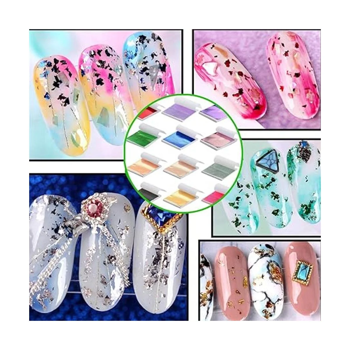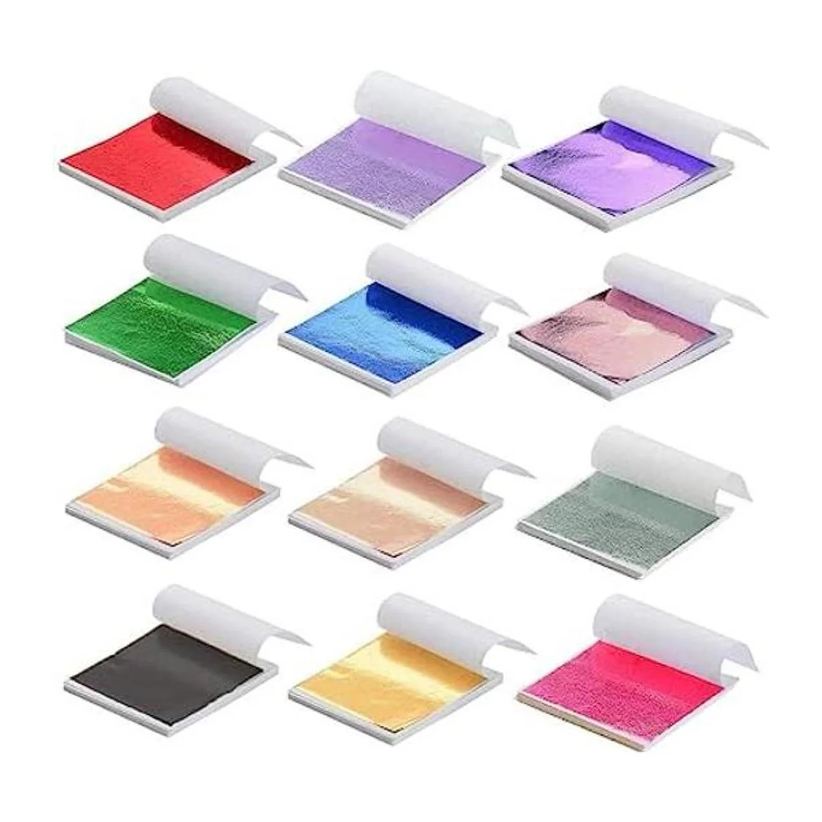 YAxis Juego de sábanas de hojas doradas de 12 colores, 600 hojas de hojas doradas de imitación de hojas de papel de aluminio para pinturas de uñas de limo