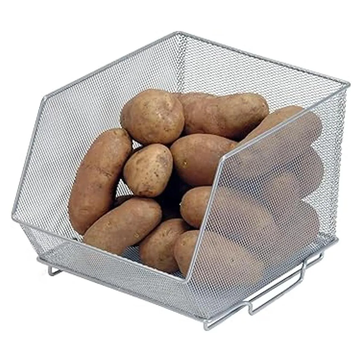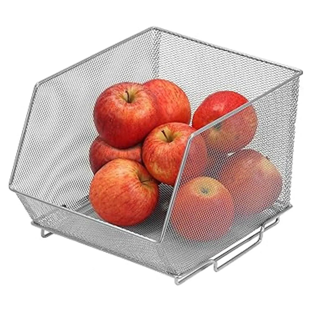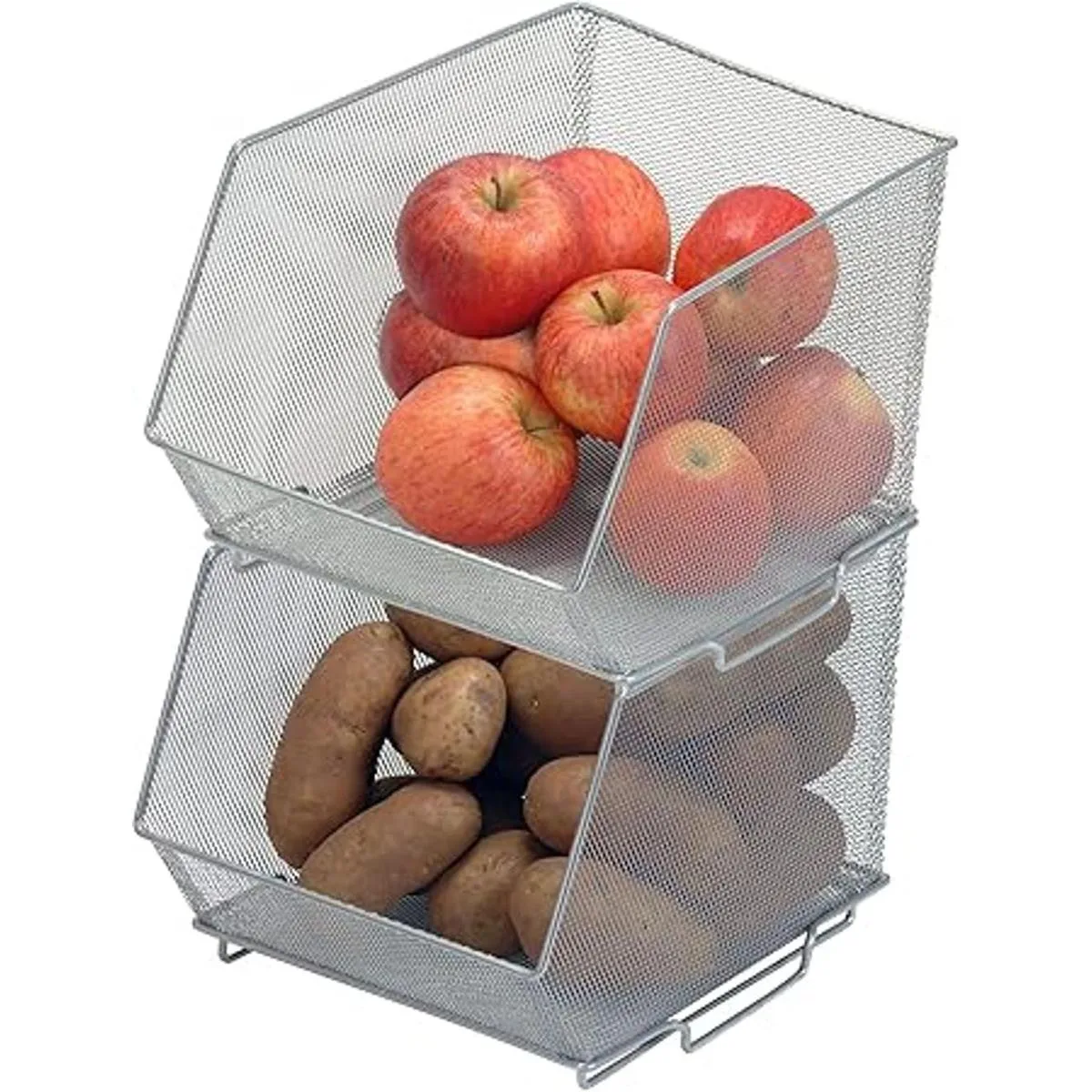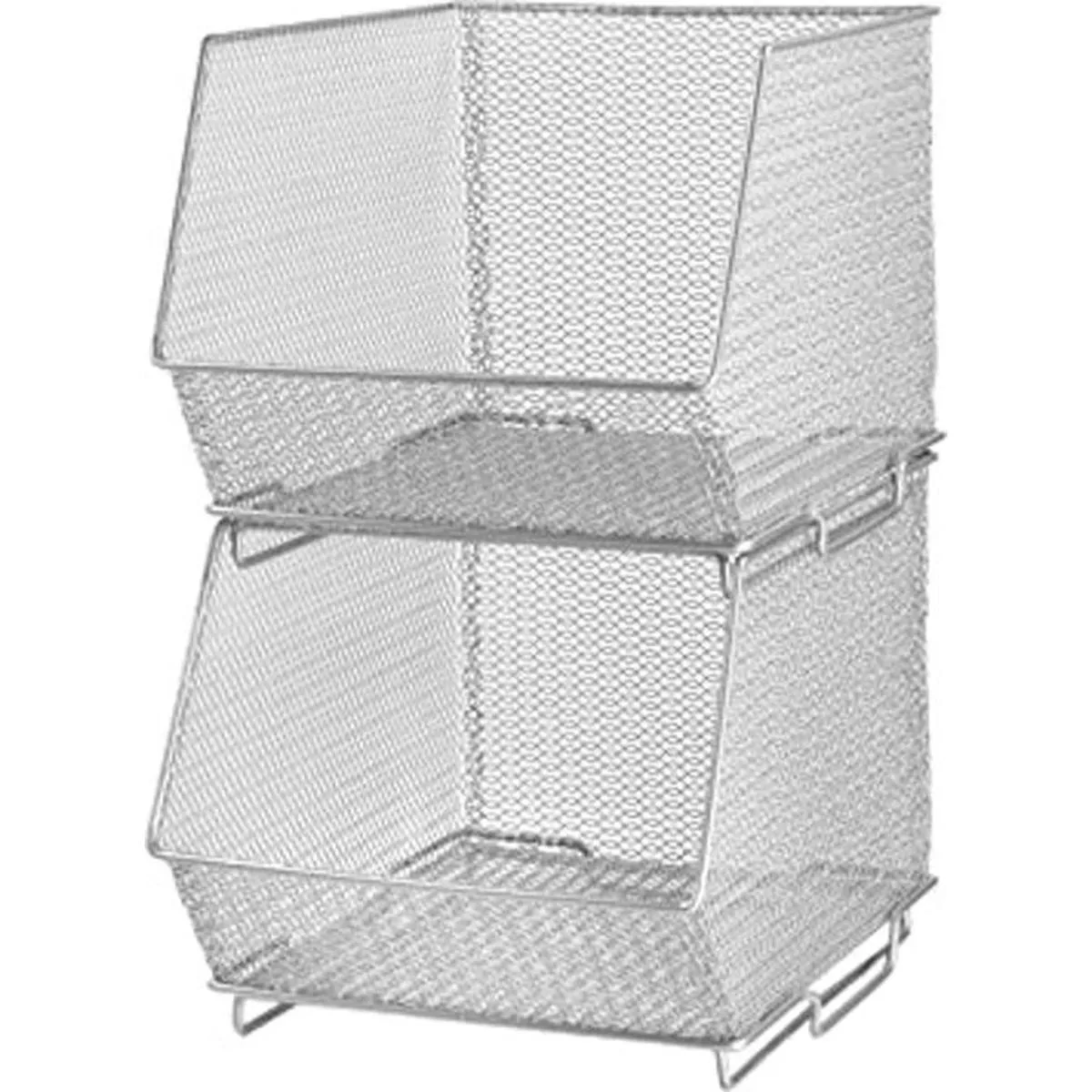 YBM HOME Contenedores de almacenamiento de malla apilable para despensa, gabinete y estantes, cesta de alambre de metal para frutas y verduras, manualidades, juguetes y artículos de limpieza, paquete de 2, mediano 10 x 8,5 x 8 pulgadas, plata
