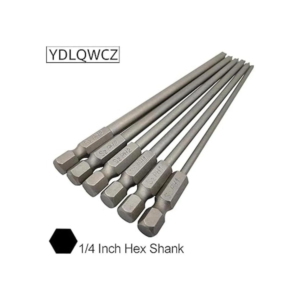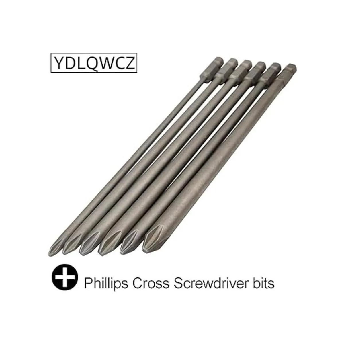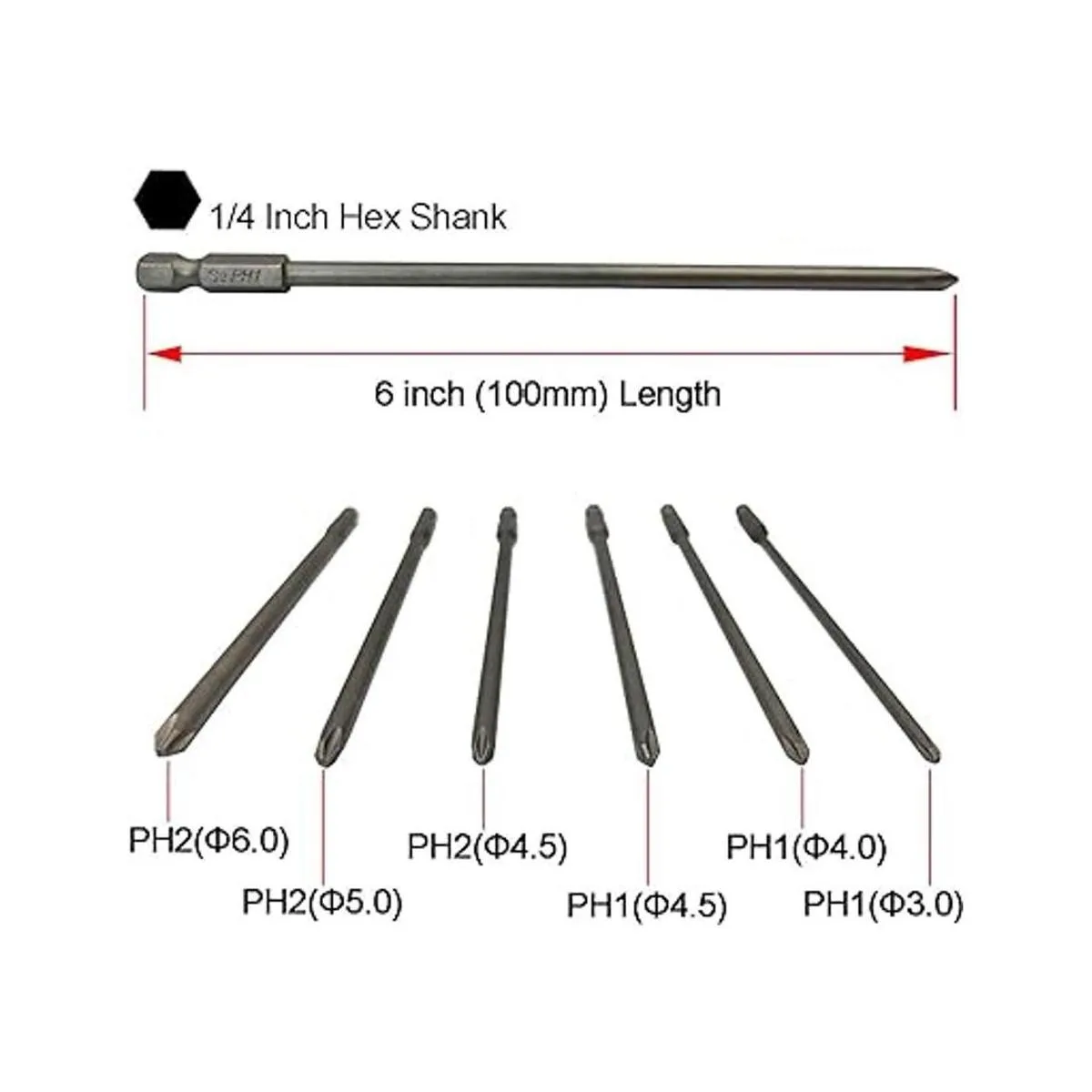 YDLQWCZ Juego de puntas de destornillador Phillips largos PH1 3.0 PH1 4.0 PH1 4.5 PH2 4.5 PH2 5.0 PH2 6.0 6 piezas de 6 pulgadas de longitud S2 juego de puntas de destornillador Phillips cruzados de acero 6 piezas de cabeza cruzada