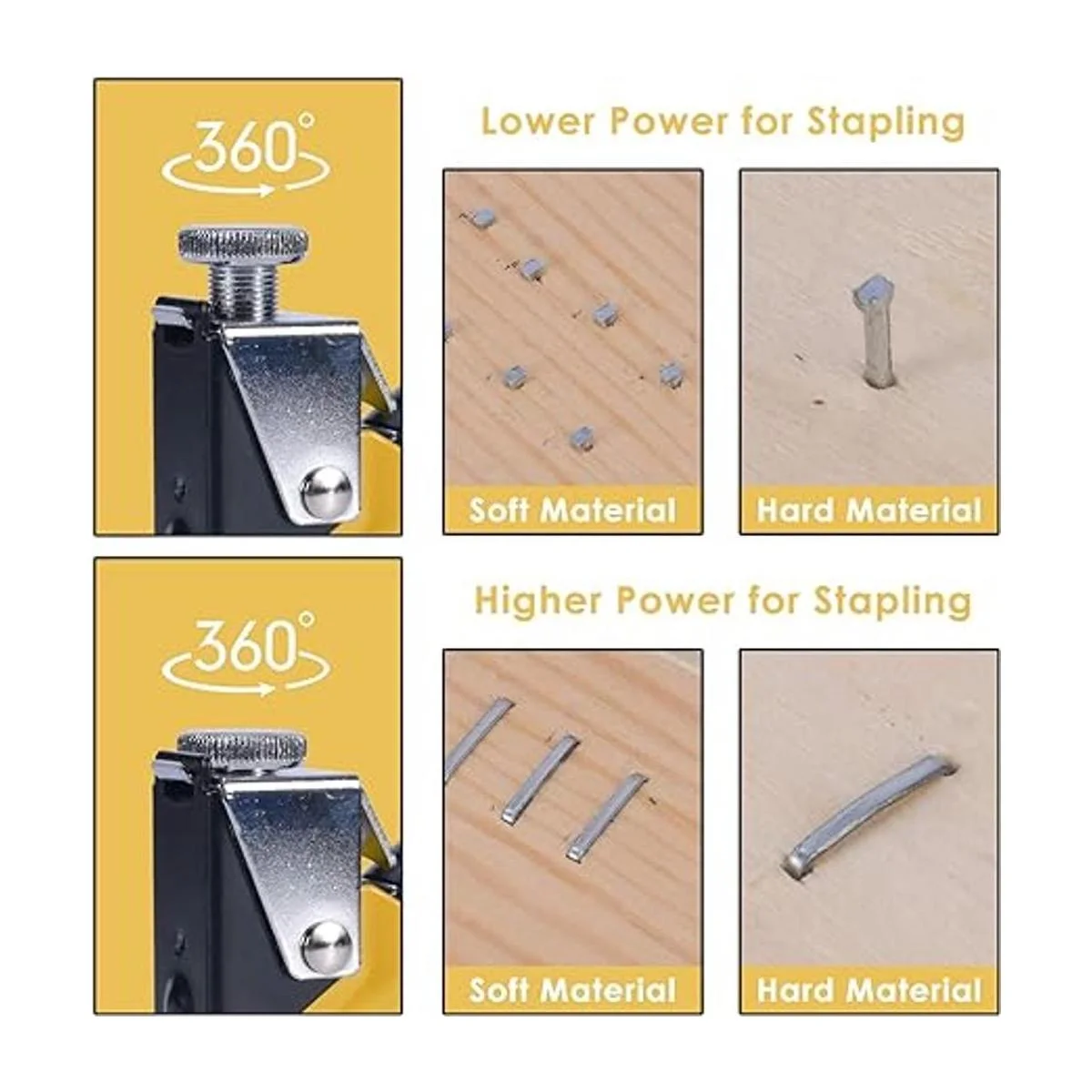 Ajuste de potencia: cambia la presión entre baja a alta con la palanca de tornillo según el requisito de tus proyectos, para grapar en materiales blandos y duros, hace que tus proyectos sean más fáciles.