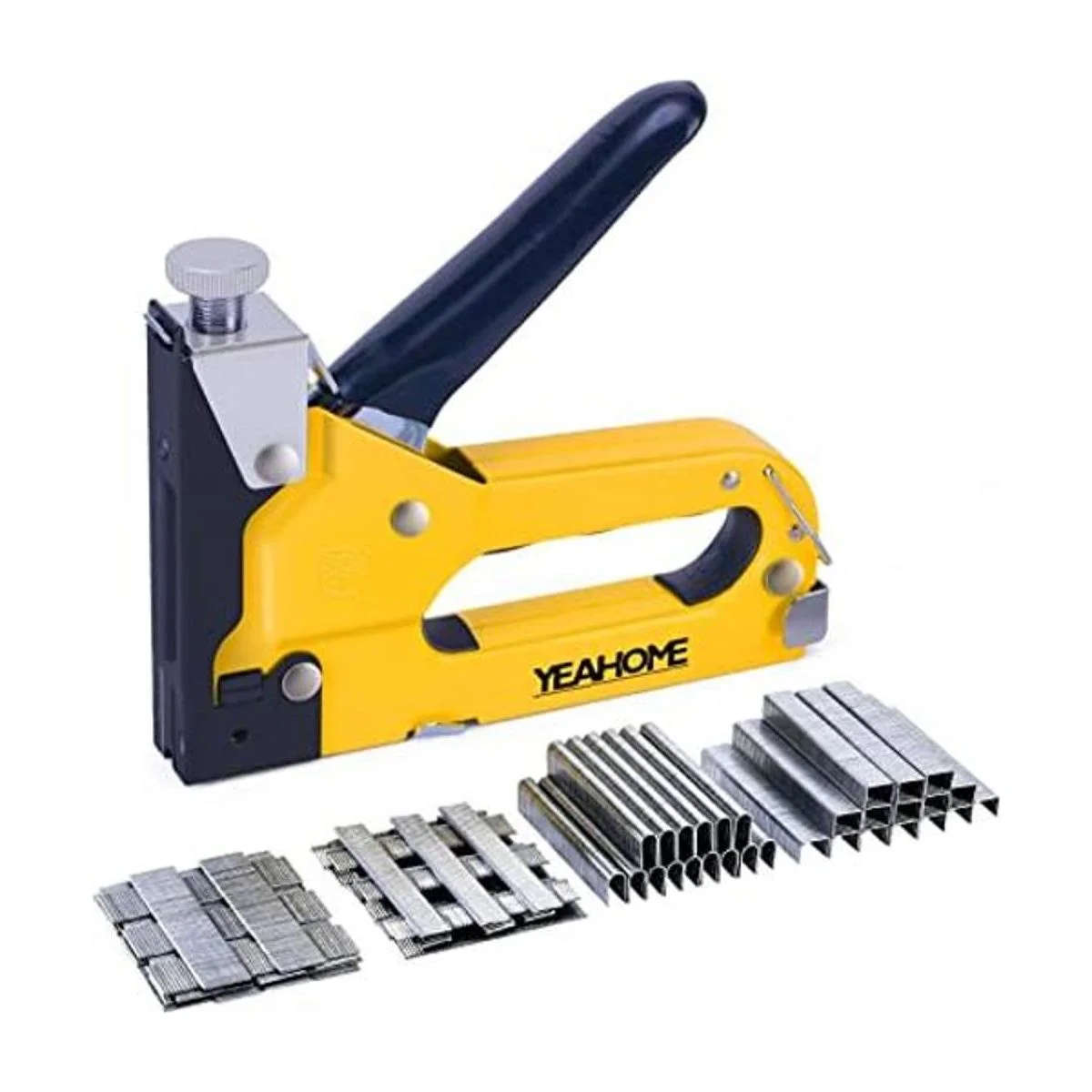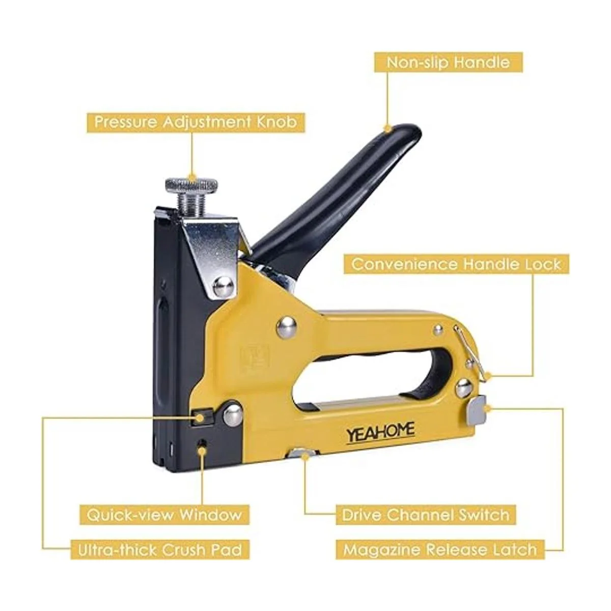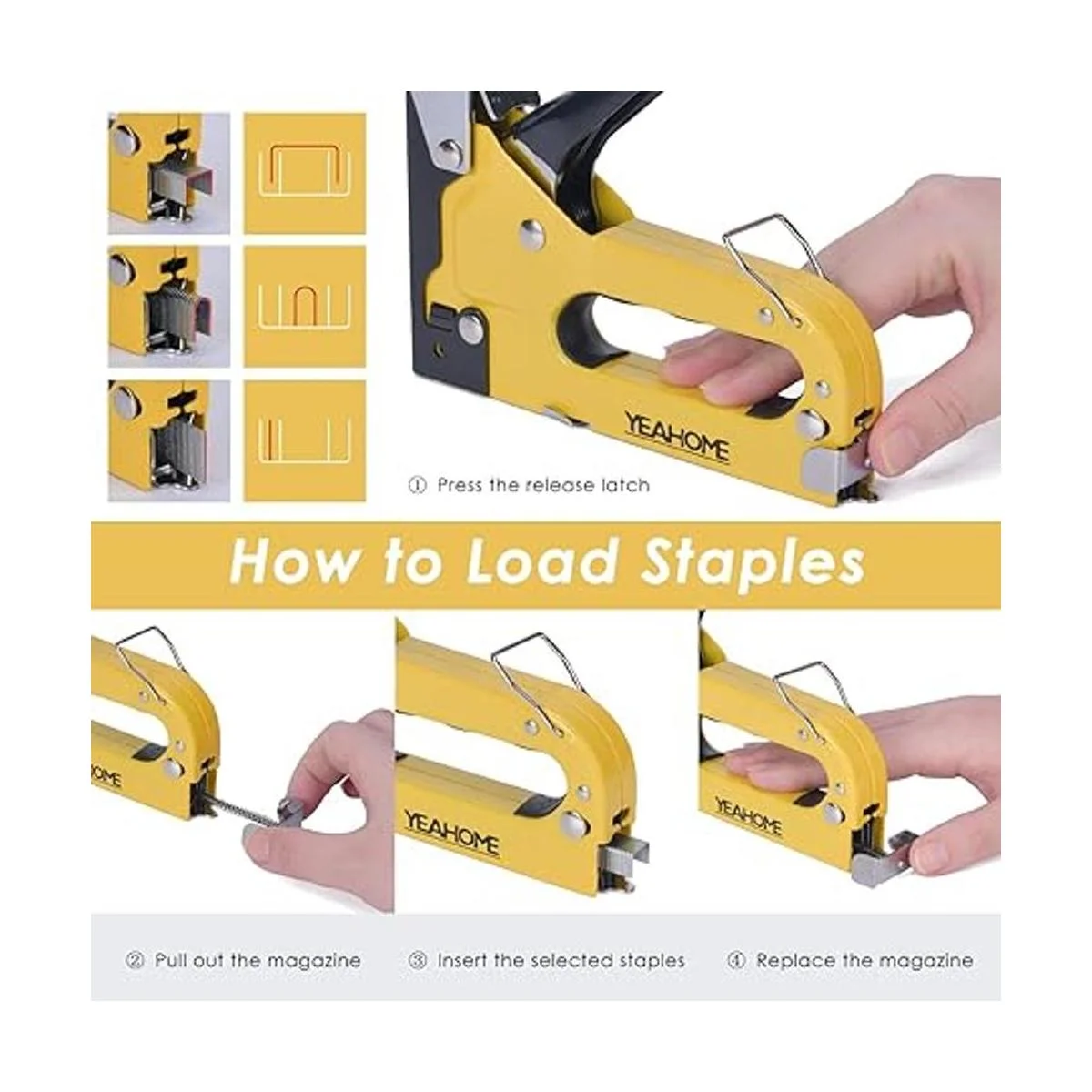 YEAHOME Pistola grapadora 4 en 1 con 4000 grapas, grapadora manual para madera, manualidades, carpintería, decoración, regalos del día del padre