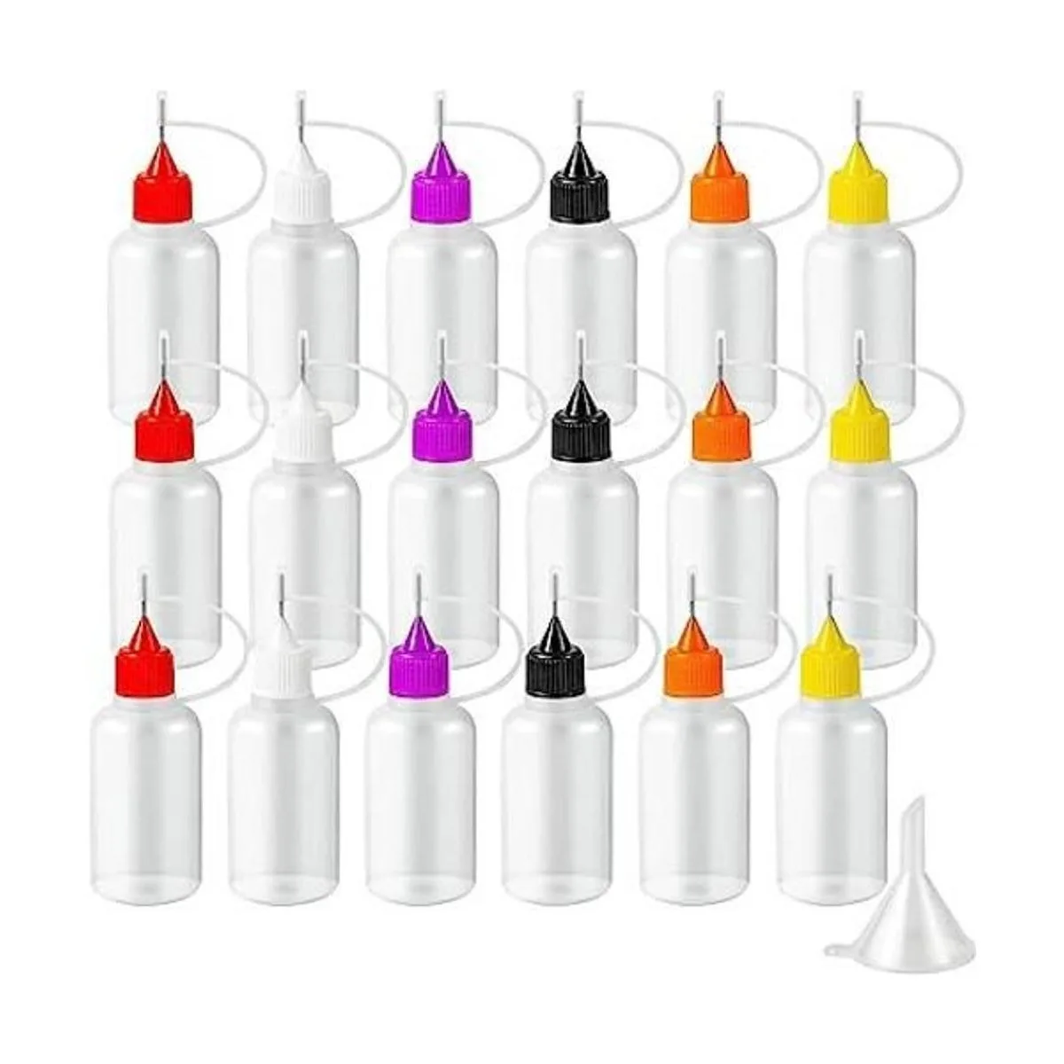 YEAJOIN 18 botellas aplicadoras de pegamento de punta de aguja de precisión, 6 colores de 1.0 fl oz1 onza botella exprimible de punta de aguja fina con mini embudo para pintura de papel de bricolaje, Quilling Craft pegamento tinta, pintura acrílica líquida, 18 unidades