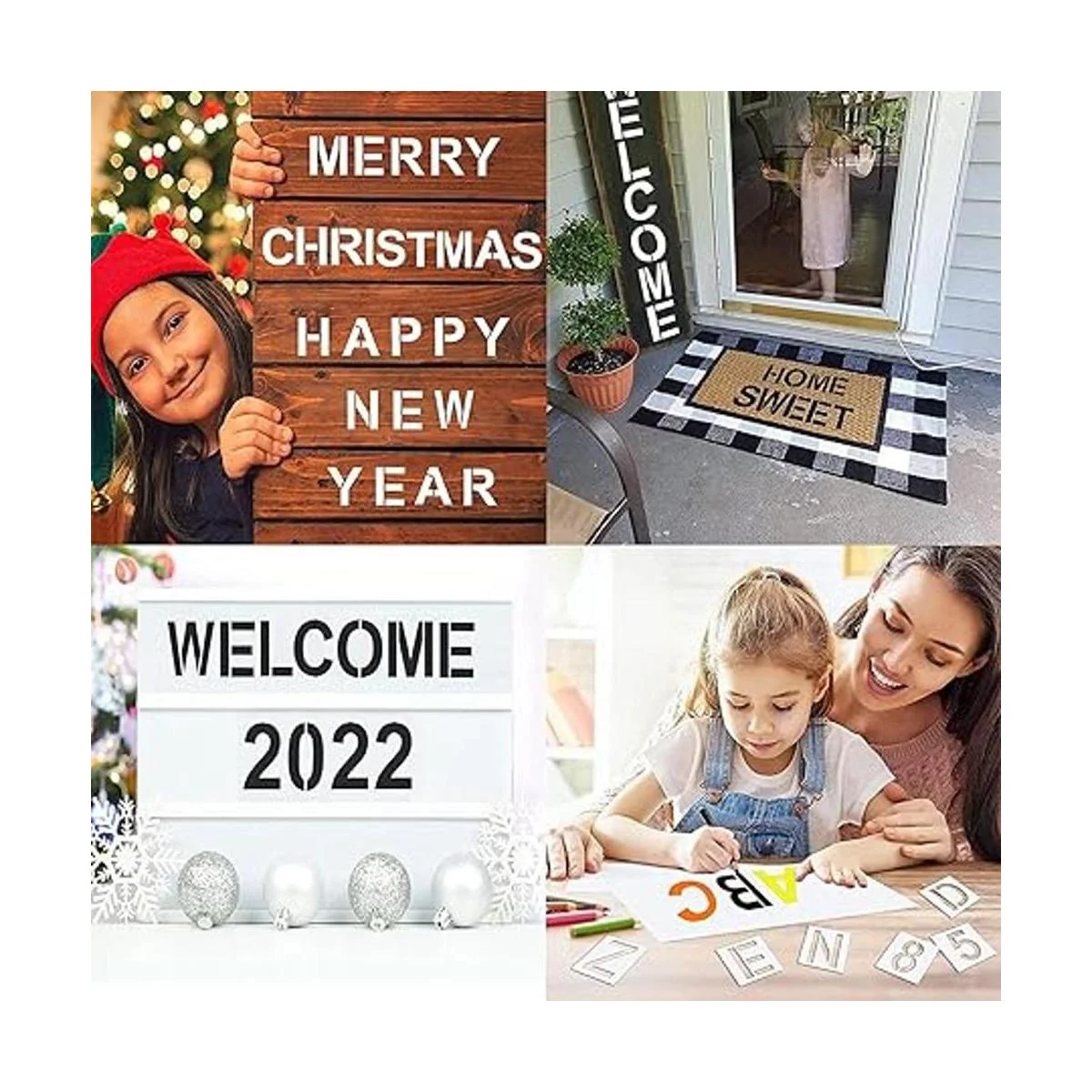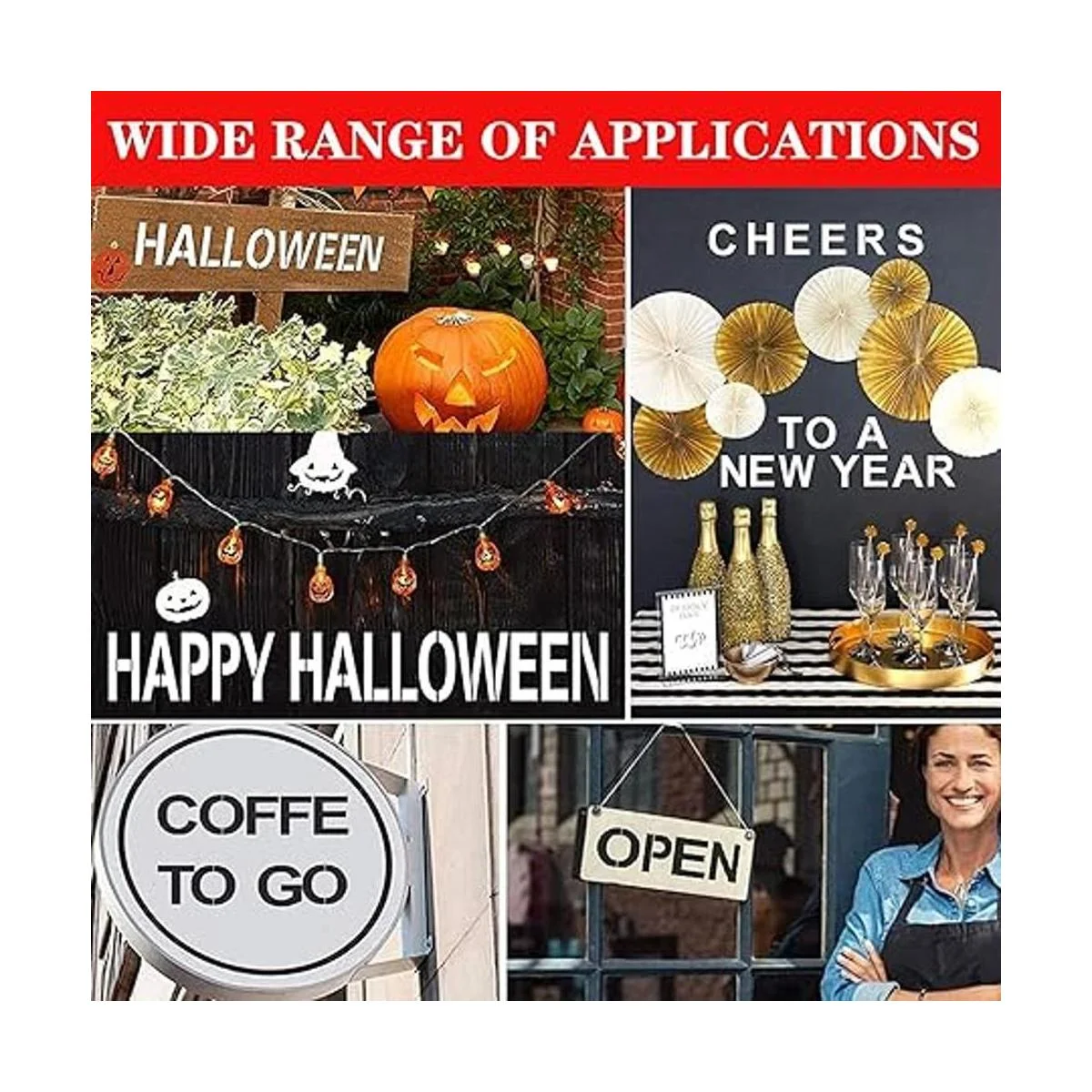 Ocasiones adecuadas: puedes utilizar estas plantillas reutilizables en madera, tela, pared, plástico, metal, cerámica, roca y más, lavables y duraderas, también se pueden almacenar con una caja o incluso en un organizador, ahorra espacio y ahorra tiempo.