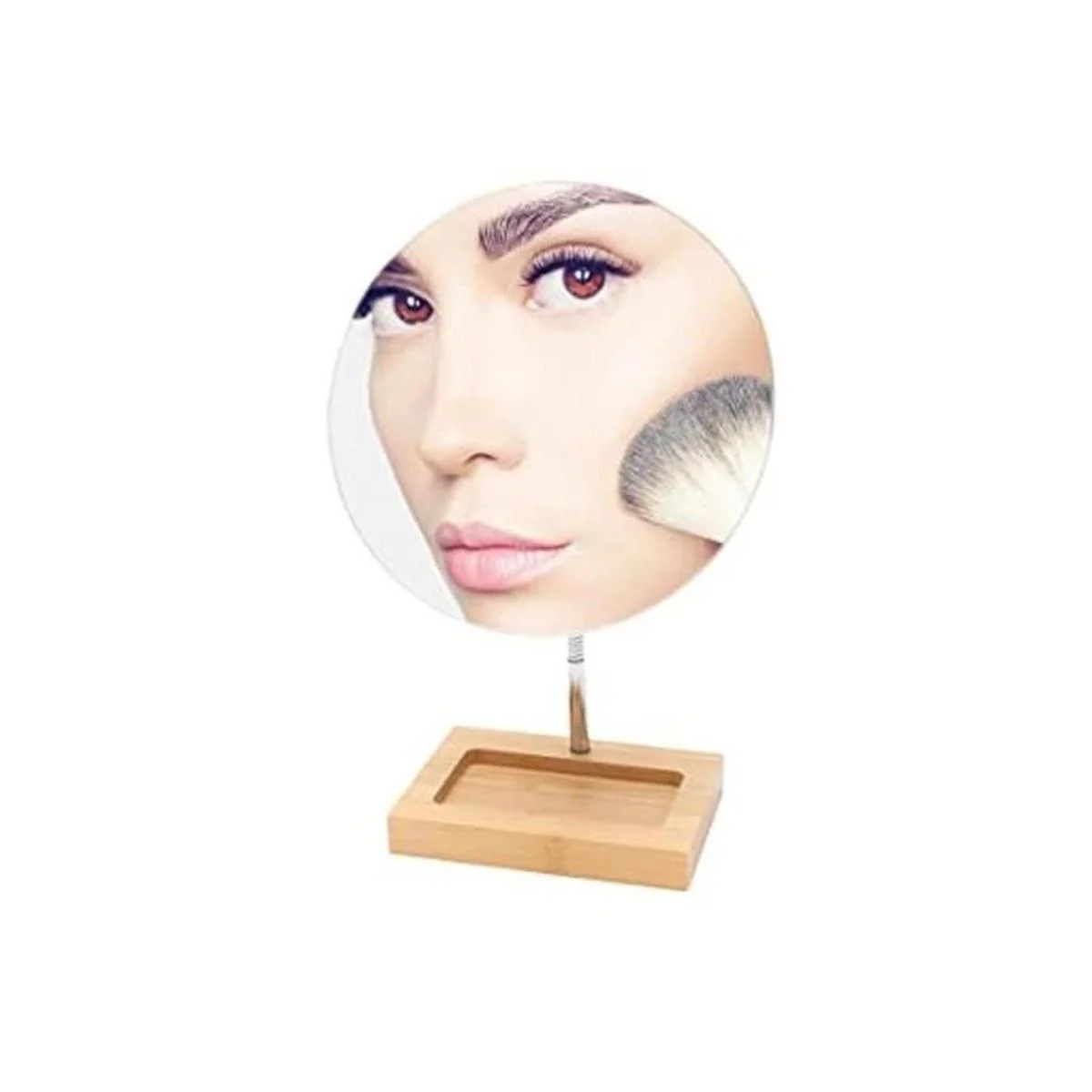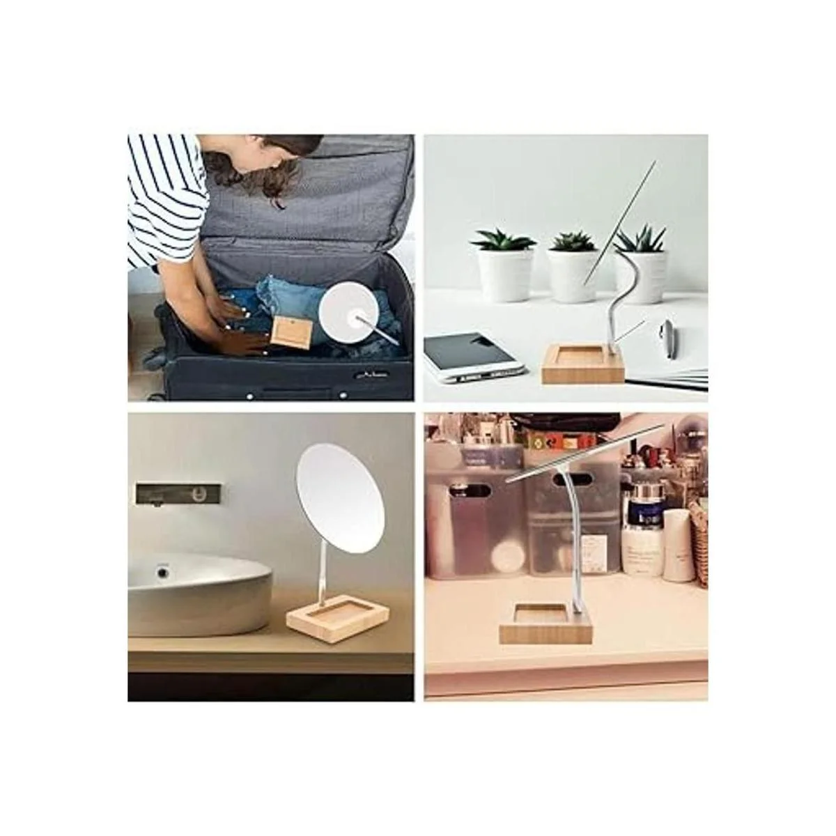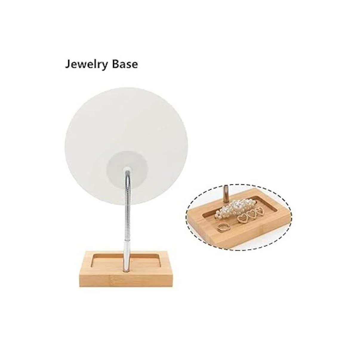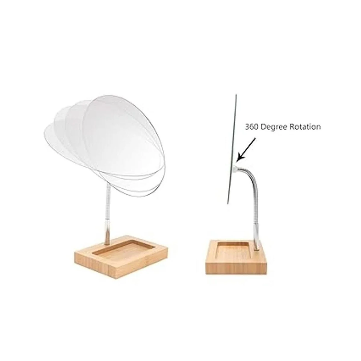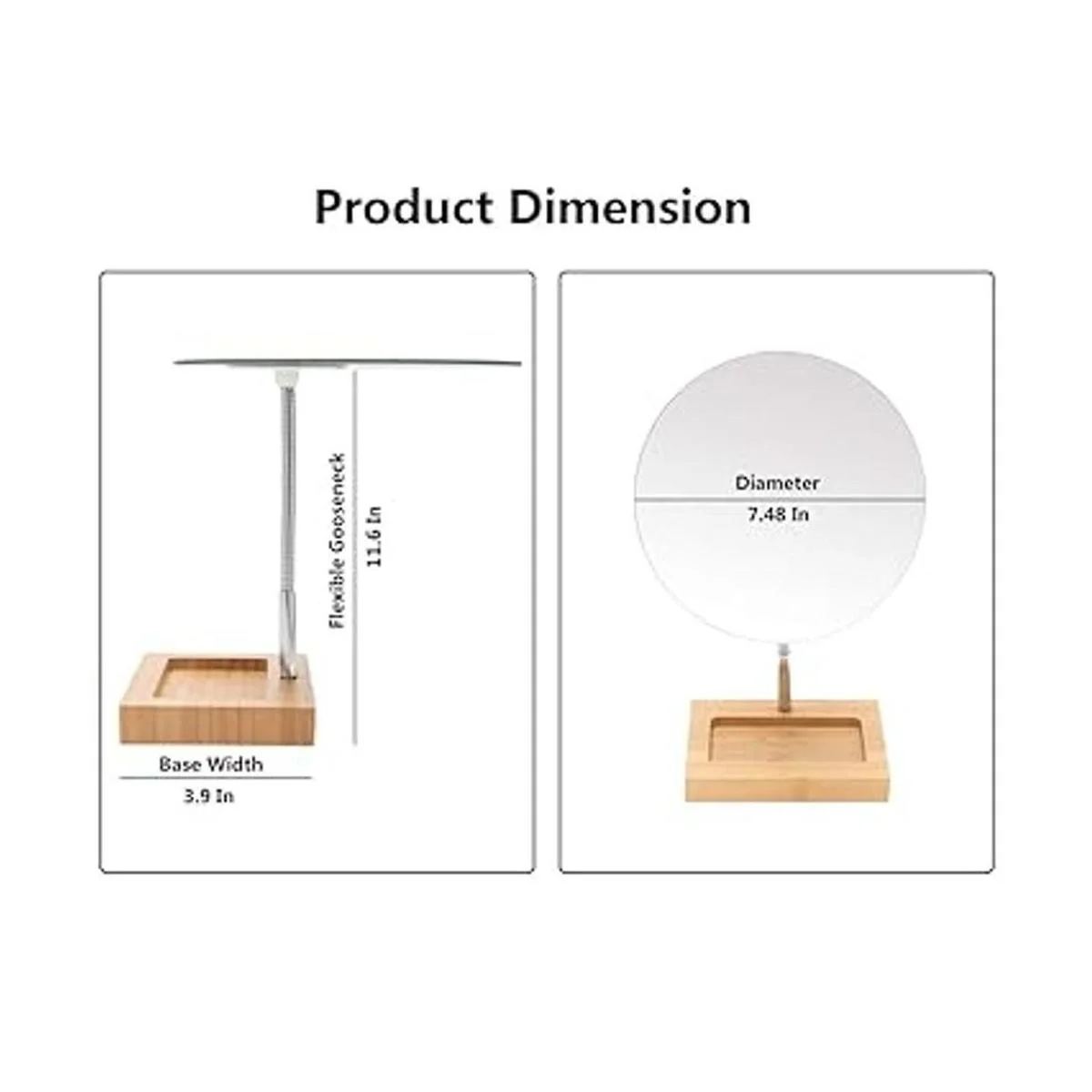 Material: el espejo de soporte tiene una base de bambú sólida y duradera, natural y respetuosa con el medio ambiente, la capa exterior tiene una excelente artesanía de pintura. El cuello de cisne se puede doblar libremente. Cristal óptico de alta calidad que te permite ver cada detalle de toda tu cara para que puedas aplicar el maquillaje sin problemas.