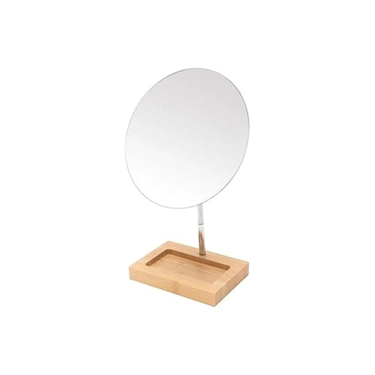 YEAKE Espejo de maquillaje flexible de bambú con cuello de cisne, rotación de 360, espejo de tocador grande sin marco, espejo de escritorio plegable portátil con soporte, espejo de maquillaje redondo para baño