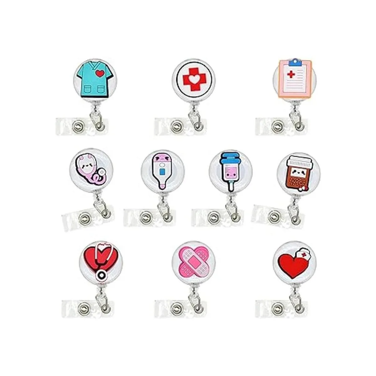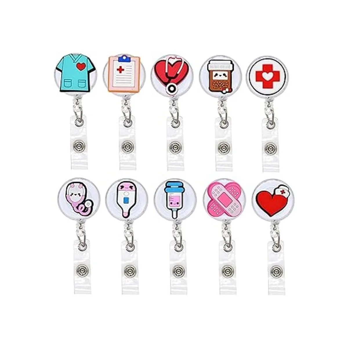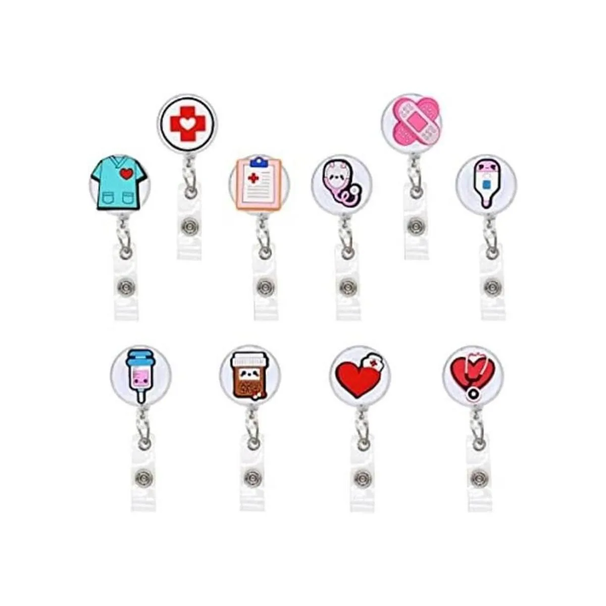 YEALQUE Paquete de 10 carretes retráctiles de identificación de enfermería, lindos carretes para enfermeras, médicos, salud, hospitales, oficina A10 piezas