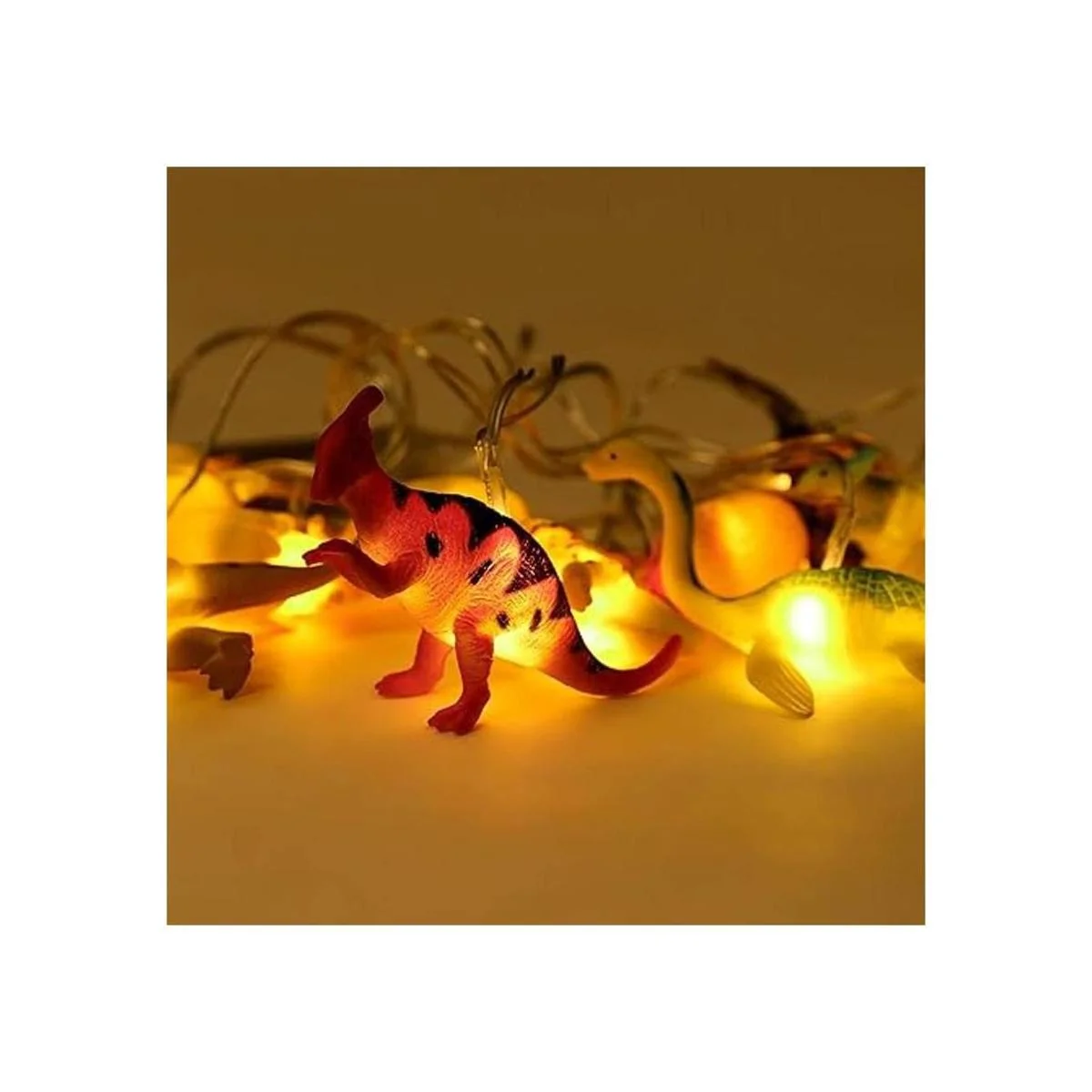 YEAMAR Cadena de luces LED, 8 pies, 12 LED, tira de luces de dinosaurio súper divertidas, funciona con pilas para decoración de interiores y niños, dormitorio de guardería