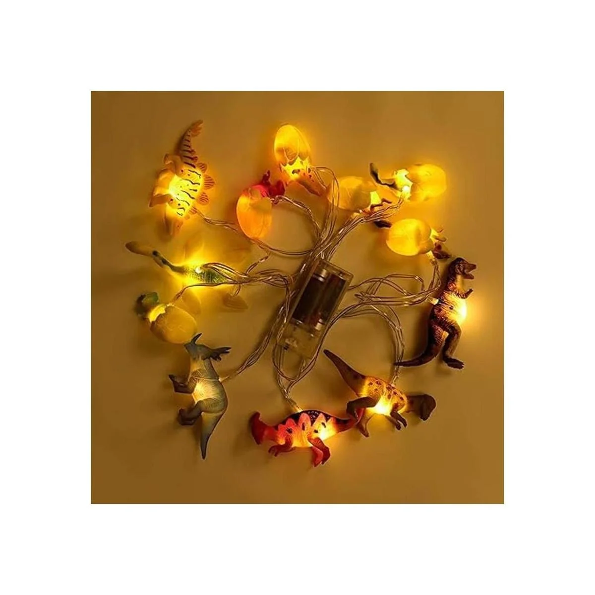 Las luces de dinosaurio funcionan con dos pilas AA la cadena de la lámpara no contiene baterías. Ha pasado la certificación CE y ROHS. Luces brillantes, dinosaurios y huevos se pueden colgar en habitaciones infantiles, jardines de infantes y jardines, chimeneas. Este es un accesorio perfecto para niños interesados en la paleontología
