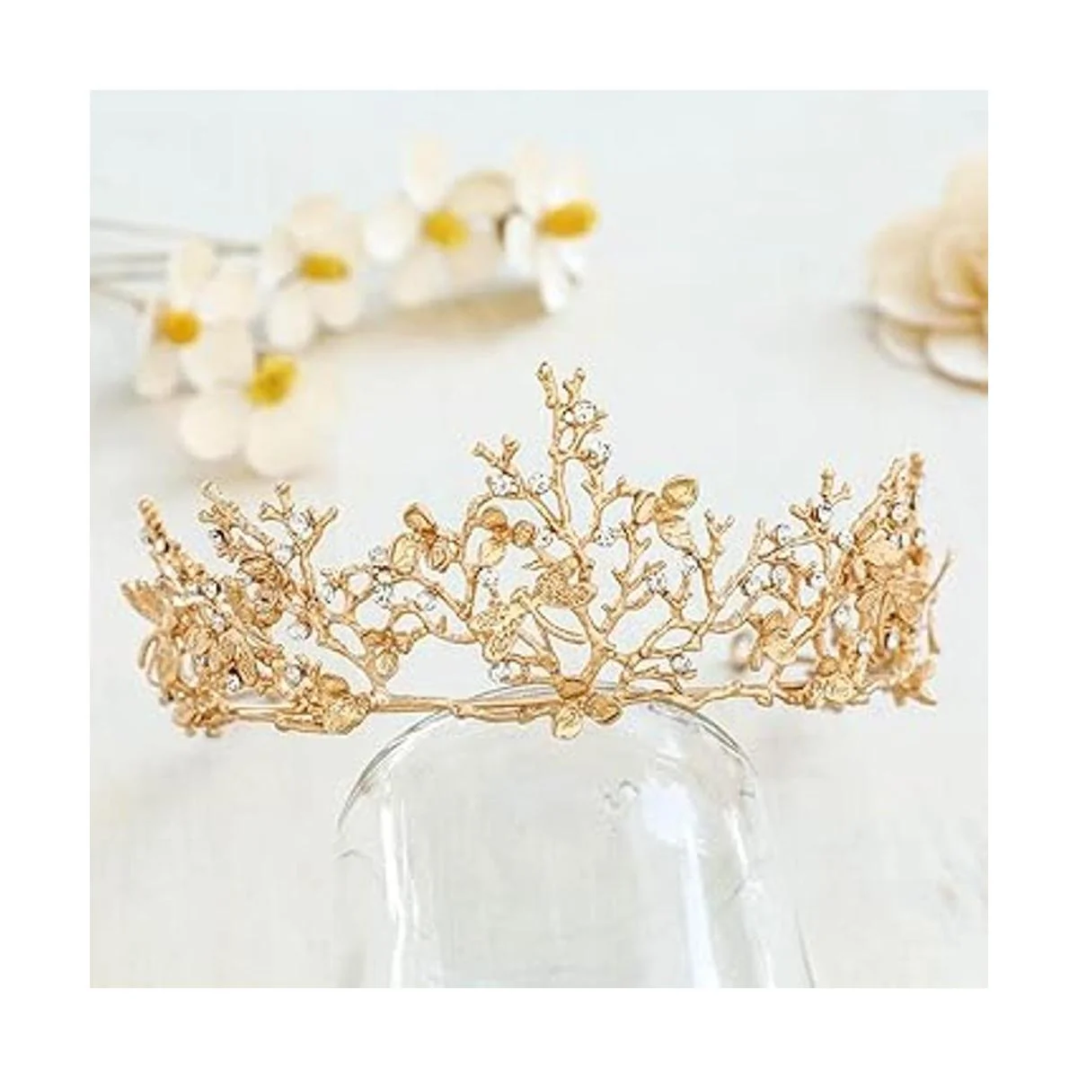 Yean boda corona y tiara flor novia princesa Reina corona barroco Vintage Rhinestone diadema para novia y dama de honor Oro