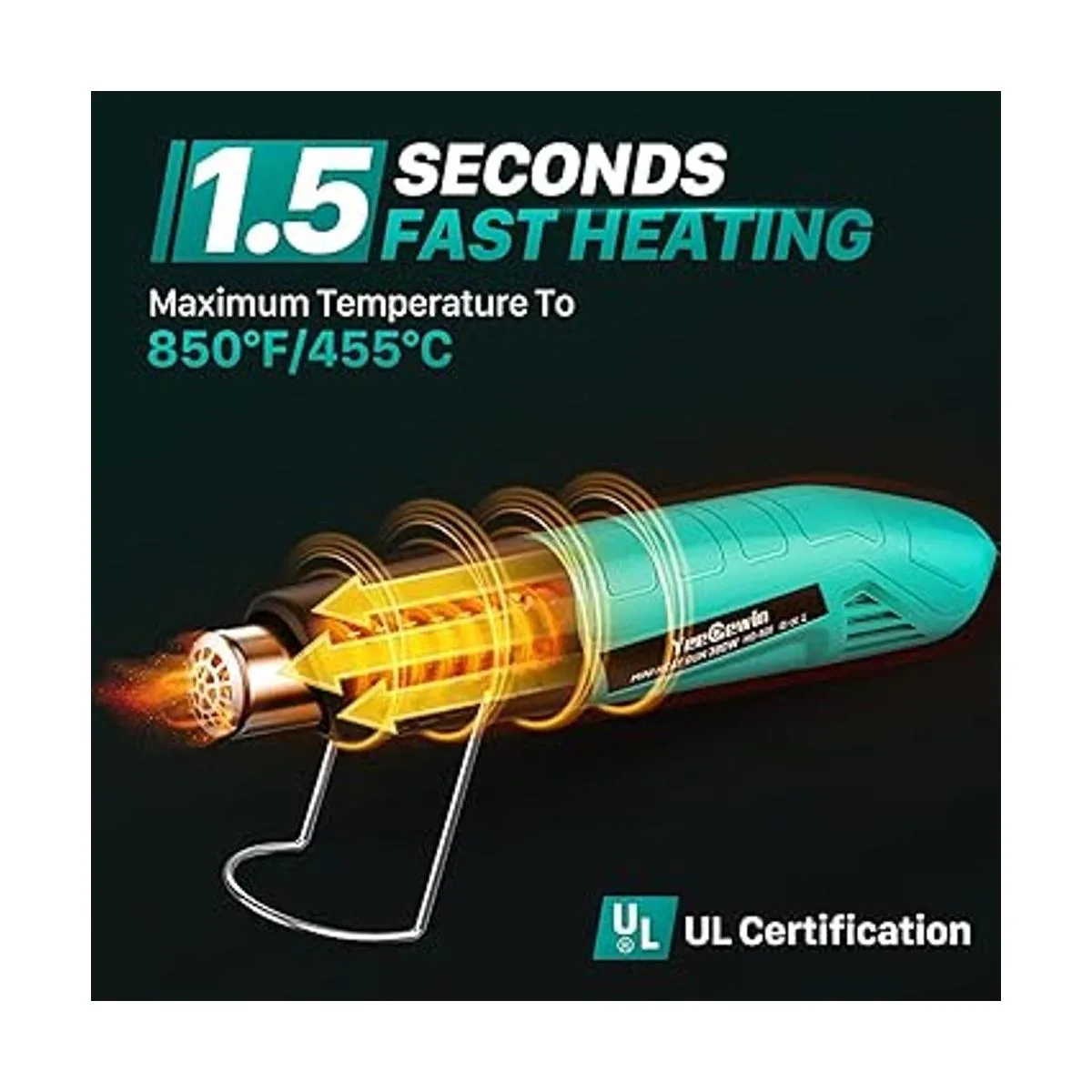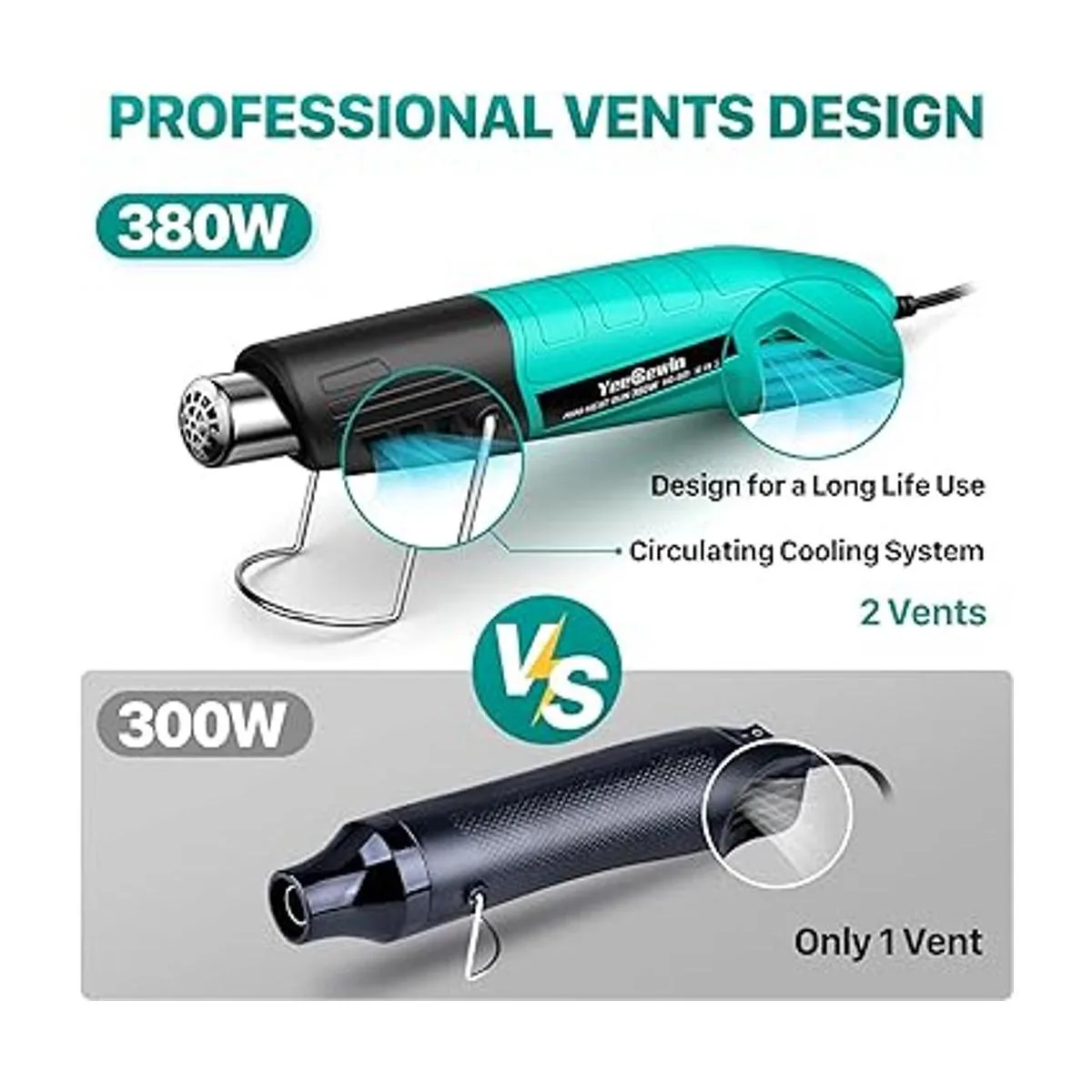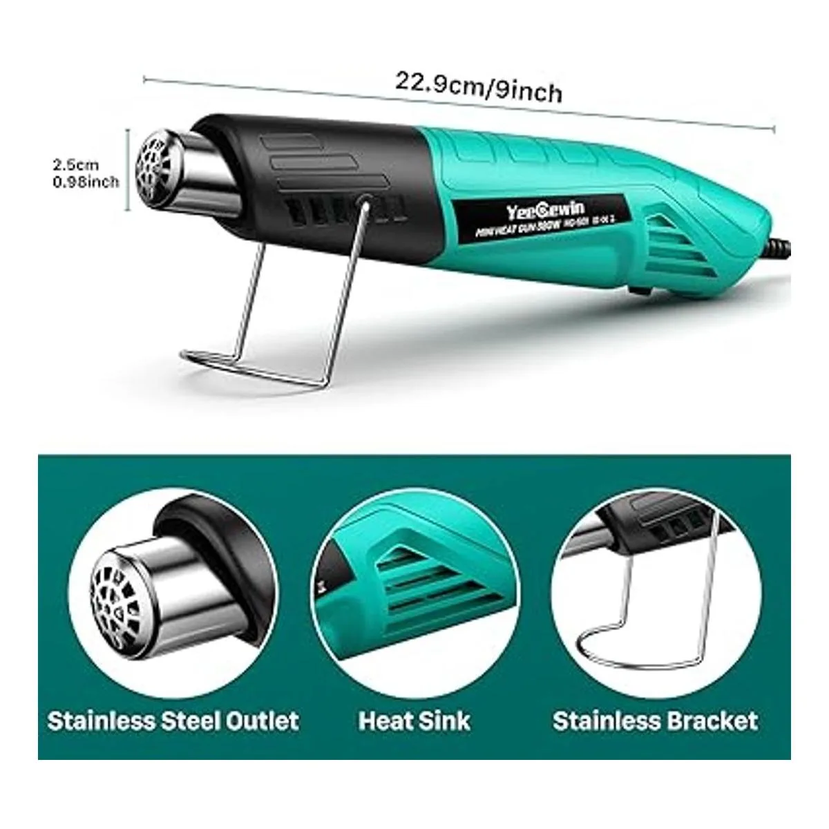 Yeegewin Pistola de calor, mini pistola de aire caliente de calor rápido de 380 W con 2 ajustes de temperatura de 480 F 850 F 480.2 F851.0 F boquilla reflectora de protección contra sobrecarga, cable de 4.9 pies de largo para envoltura retráctil, vinilo, manualidades, resina epoxi