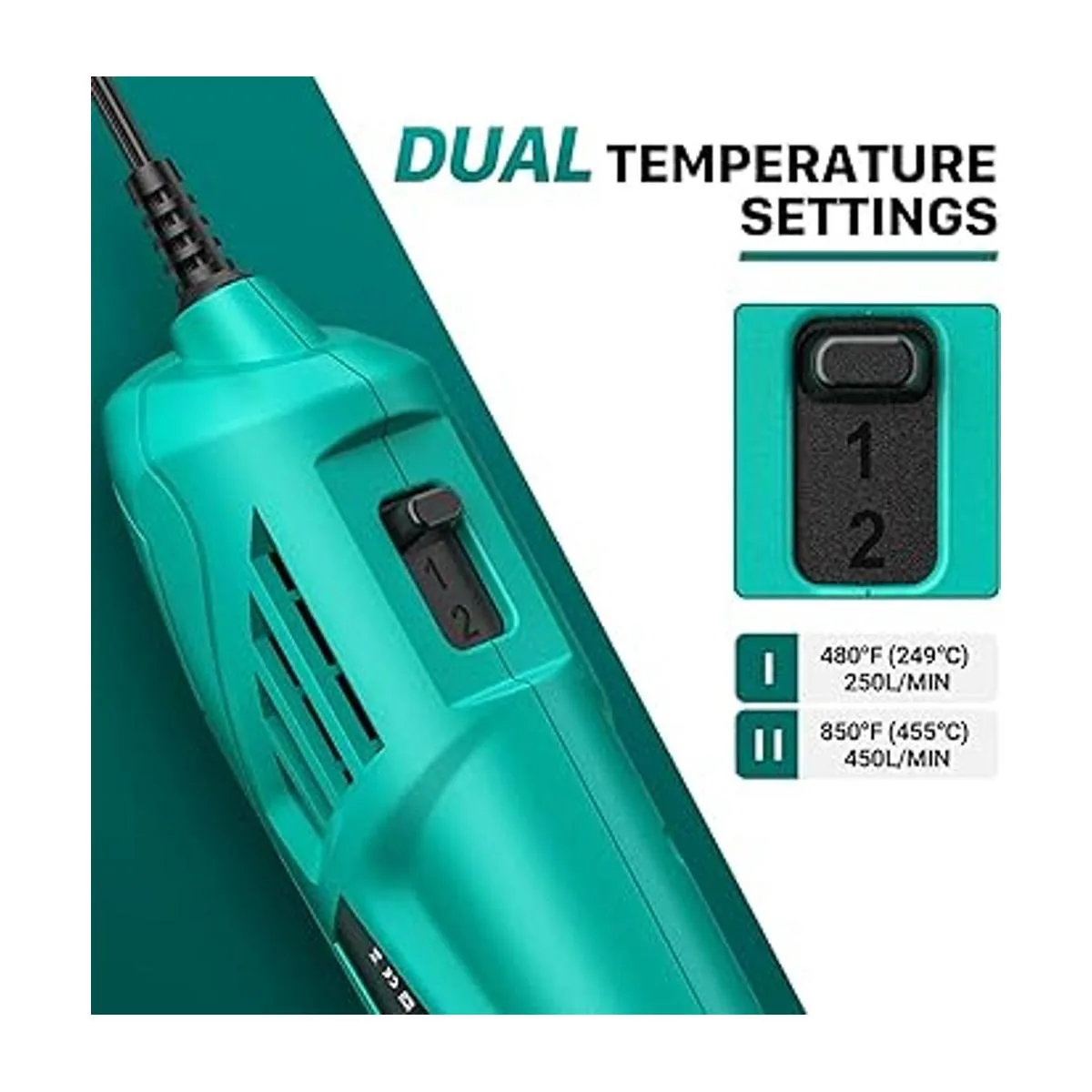 Ajustes de temperatura duales La mini de calor YEEGEWIN tiene 2 ajustes de temperatura, I: 480F, 100L/min; II: 850F, 500L/min. Baja velocidad y calor para trabajos delicados o detallados, alta velocidad y calor para trabajos de alto volumen, lo que garantiza que esta de calor se pueda utilizar para satisfacer tus numerosas necesidades.
