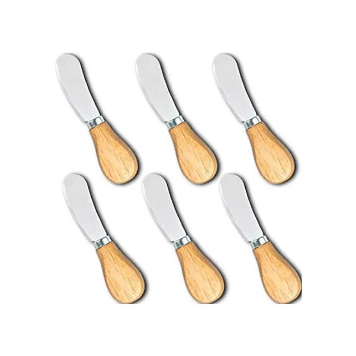 Juego de 6 cuchillos de queso incluidos. Incluye 6 piezas de esparcidores de queso de 5 pulgadas con agarres de madera a este precio justo.