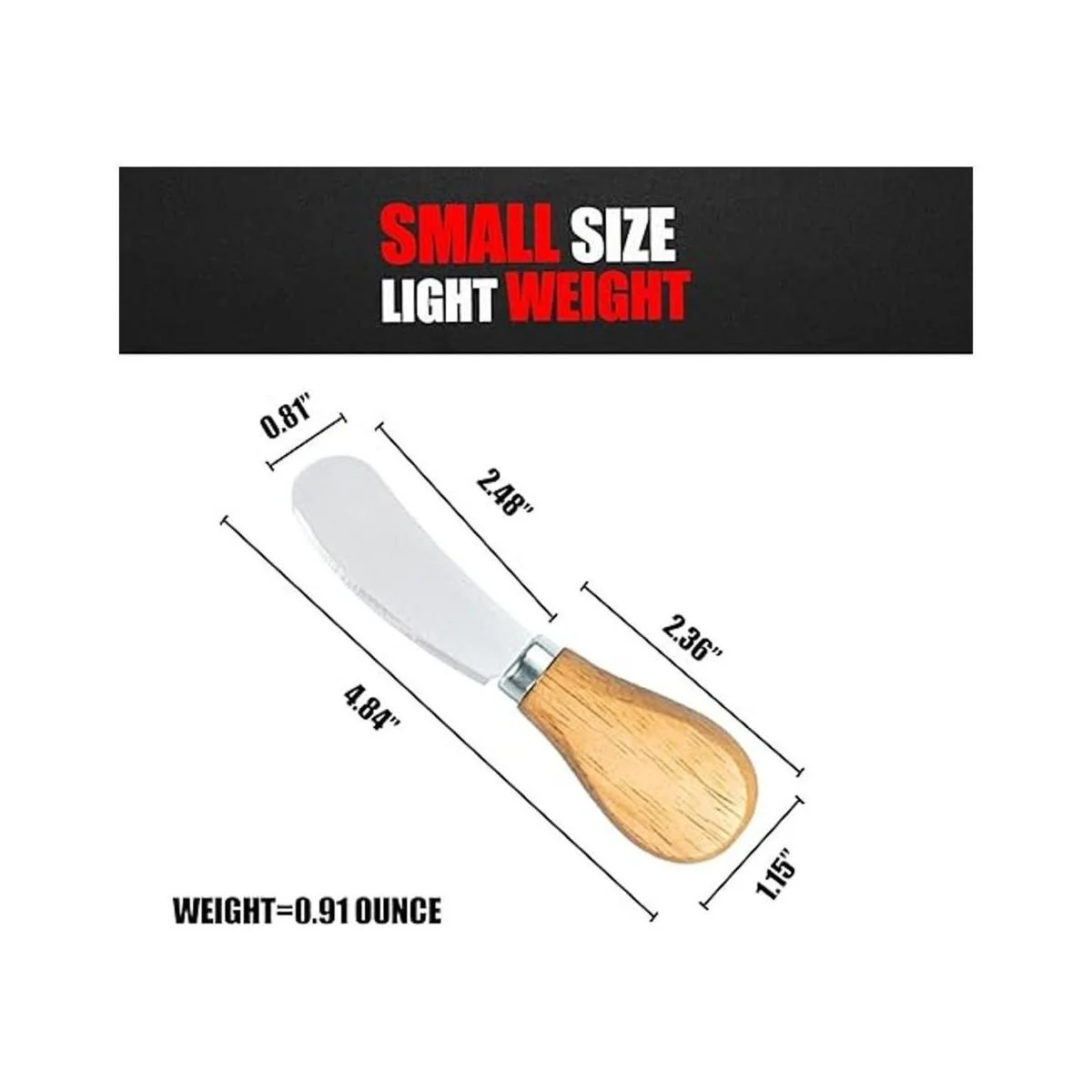 Hoja de acero inoxidable 304 de grado alimenticio: muchos cuchillos de queso en el mercado están hechos de acero inoxidable 204. Nuestros productos están hechos de materia prima de acero inoxidable 304 de grado alimenticio. La hoja del cuchillo tiene un mejor rendimiento anticorrosión y antioxidante, y no contienen metales pesados nocivos. Por último, tiene una hoja afilada 2.48 pulgadas de largo x 0.81 pulgadas de ancho, ideal para esparcir y cortar bloques de queso más pequeños.