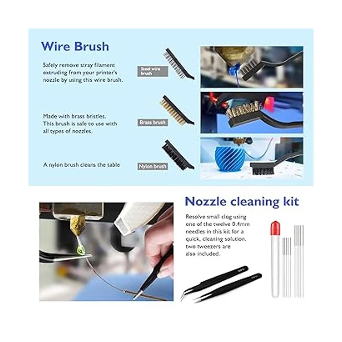 Para un procesamiento refinado: los kits de herramientas de impresión 3D YEETIN implican múltiples herramientas específicamente elegidas y probadas para refinar tu impresión 3D, utiliza el kit de limpieza de boquillas para eliminar pequeños bloqueos en la boquilla, calibradores y limas de aguja para una medición precisa, así como una herramienta de desbarbado y cuchillas de cuchillo de arte para un procesamiento fino