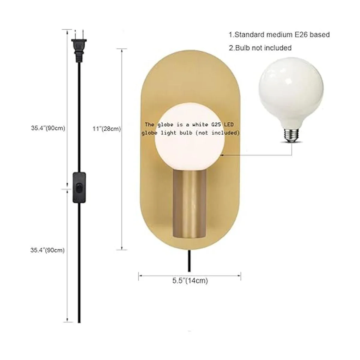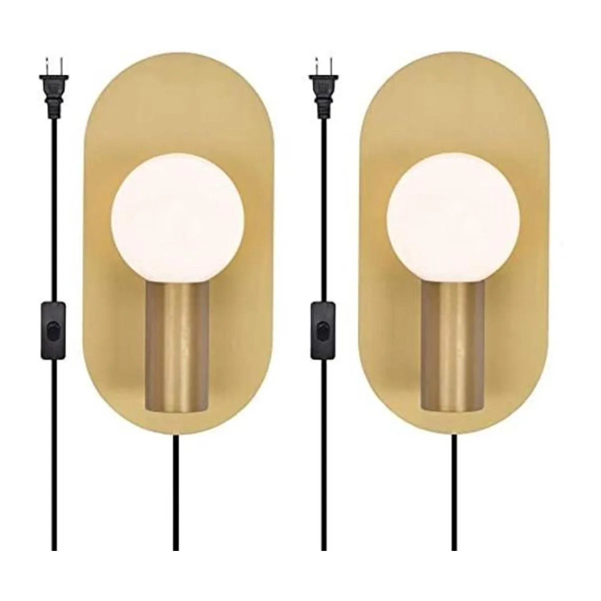 YEEZEMA Moderno juego de 2 apliques de pared, elegante cable de enchufe de pared dorado con interruptor de encendido y apagado, accesorio de pared de acero inoxidable cepillado único para dormitorio, sala de estar, baño