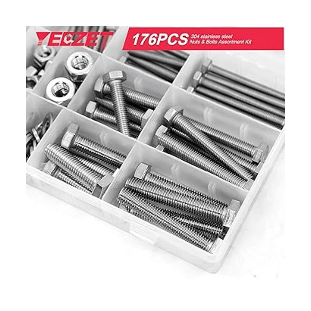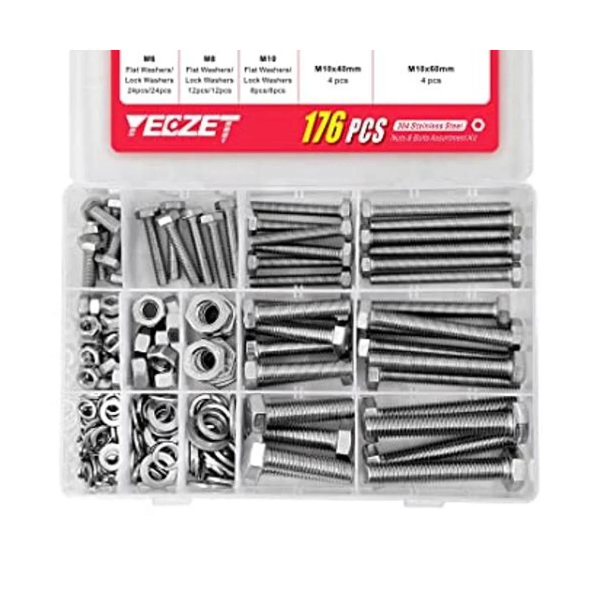 YEEZET Juego de 44 tornillos y tuercas resistentes M6 M8 M10, acero inoxidable 304, incluye 8 tamaños más comunes