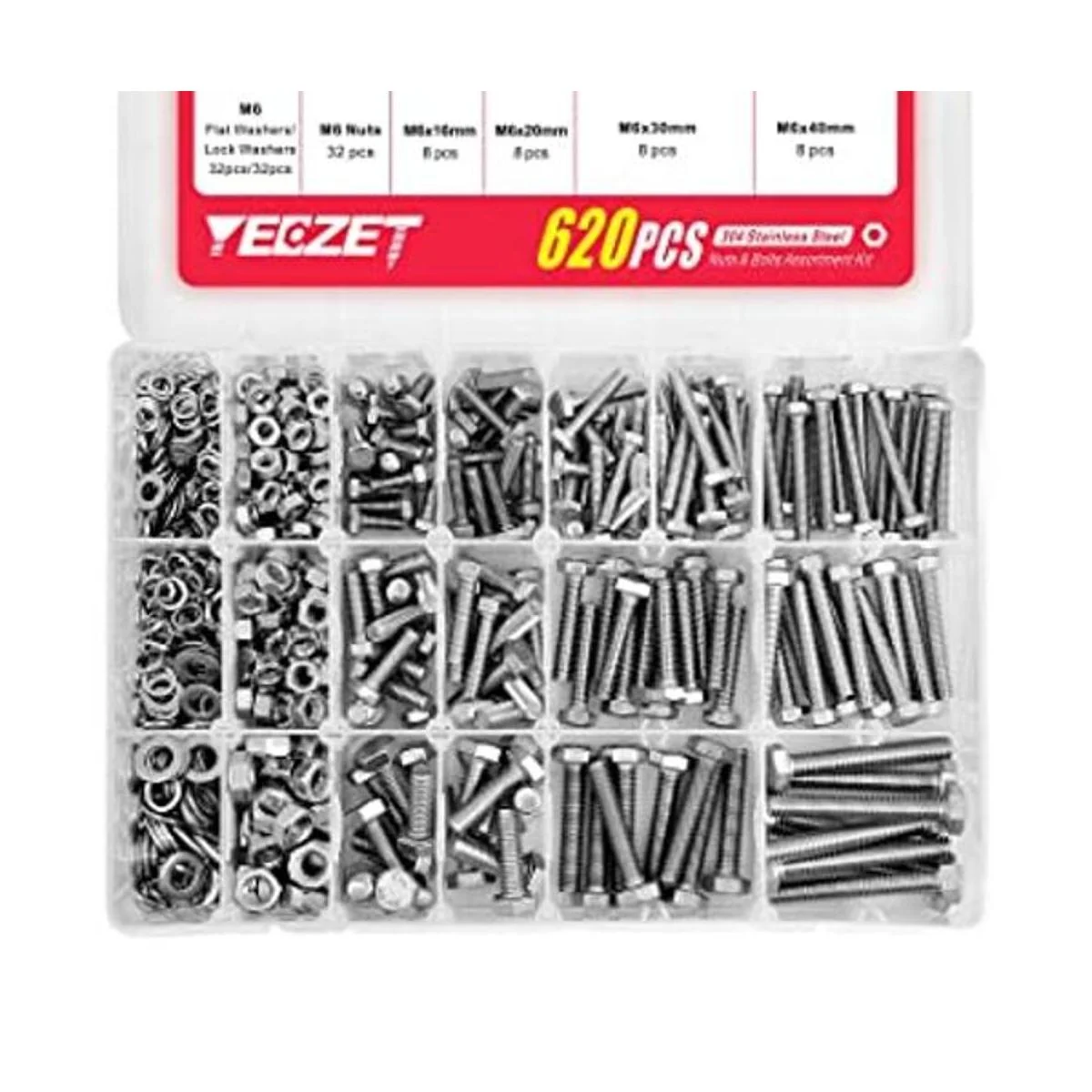 YEEZET Kit surtido de 620 tornillos y tuercas resistentes M4 M5 M6, acero inoxidable 304, incluye 13 tamaños más comunes
