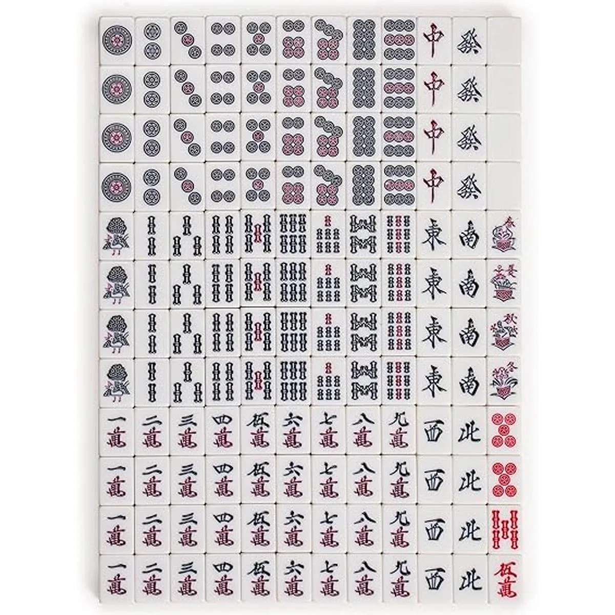 Juego listo para jugar: incluye cuatro bandejas para almacenamiento de azulejos, cuatro dados, un conjunto de palos de apuestas y una tesela de viento oriental para determinar la colocación del asiento; la funda compacta de vinilo negro mide 11.2 x 7.3 x 2.0 in; todo el juego pesa 5.5 lbs