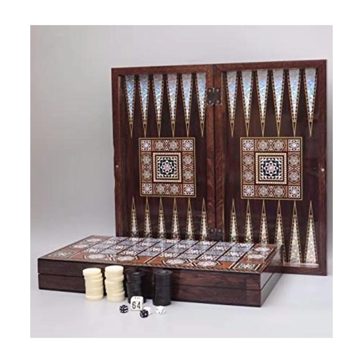 Conjunto de Backgammon de madera con patrón de nácar laminado