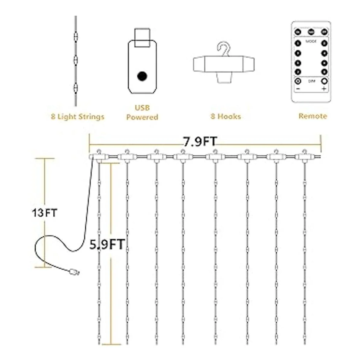 Ampliamente utilizado con IP64 resistente al agua: perfecto para decoraciones de patios interiores y exteriores. Como árbol de Navidad al aire libre, día de San Valentín, bodas, decoración de Halloween, vacaciones, espectáculos, construcción comercial, centro comercial, etc. Nota: solo cadena de luces, no incluye cortina.