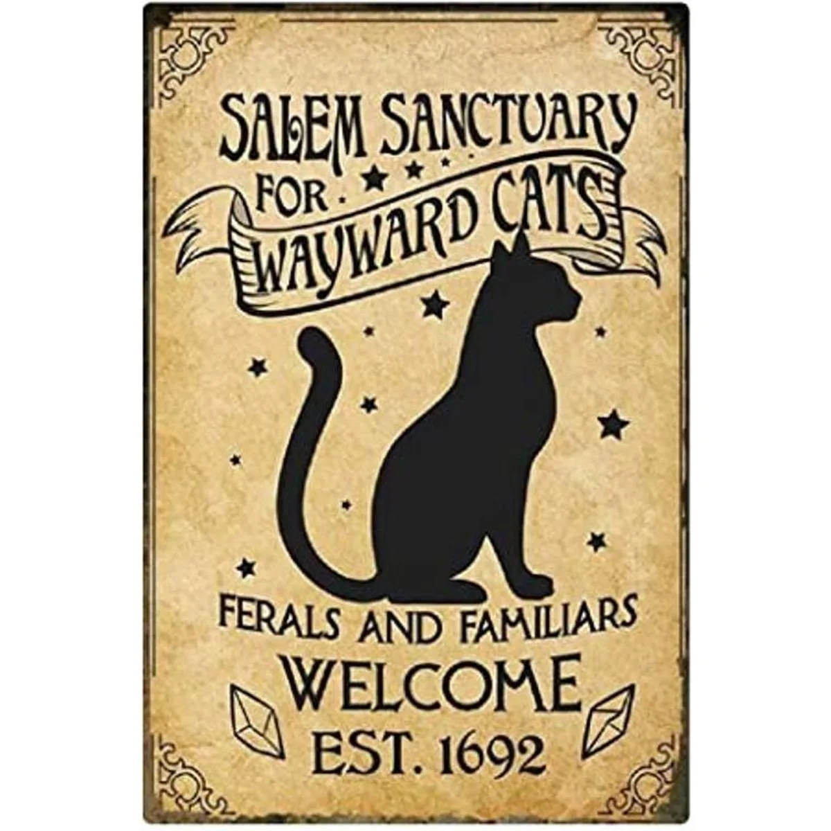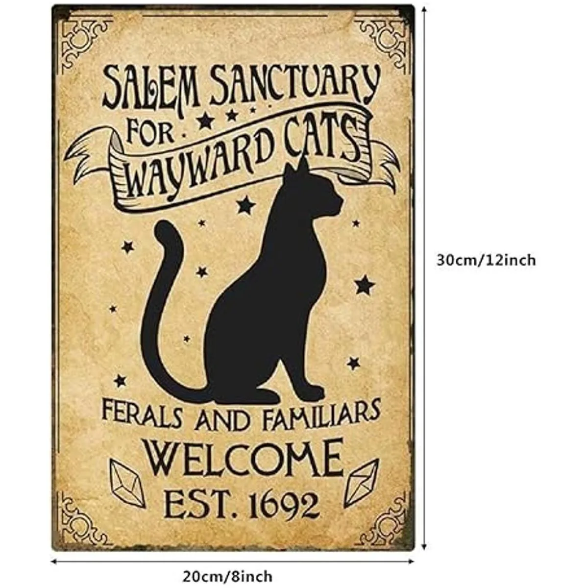 Material: Salem Sanctuary For Wayward Cats Letreros de lata retro hechos de hojalata/hierro metálico, respetuoso con el medio ambiente y reciclable.