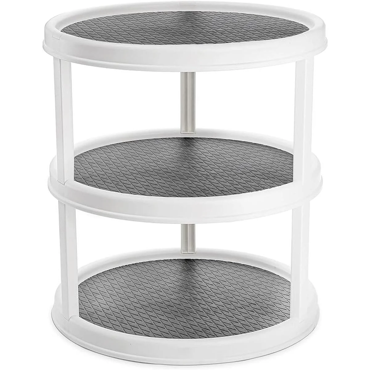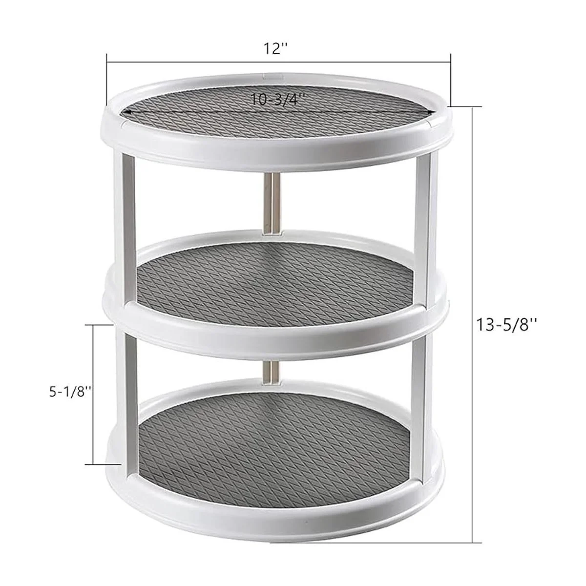 Yesland Mesa giratoria de 3 niveles Lazy Susan organizador de especias redondo de 12.0 in con gradas y organizador de almacenamiento antideslizante Bandeja para frutas, aperitivos, cosméticos, despensa, baño gris