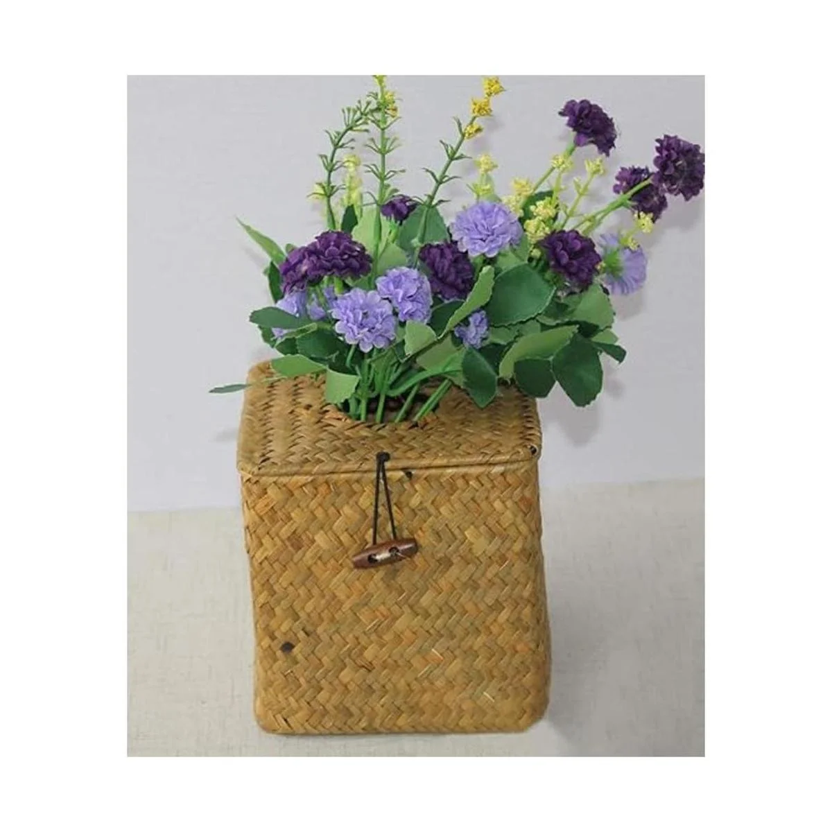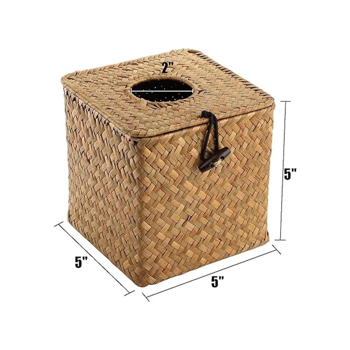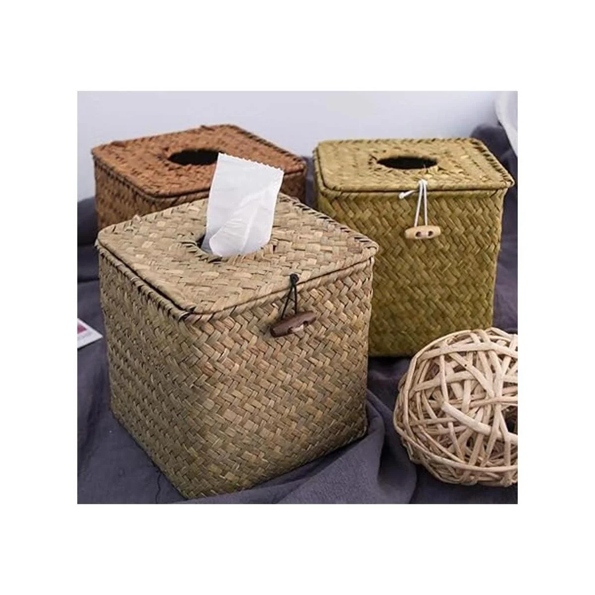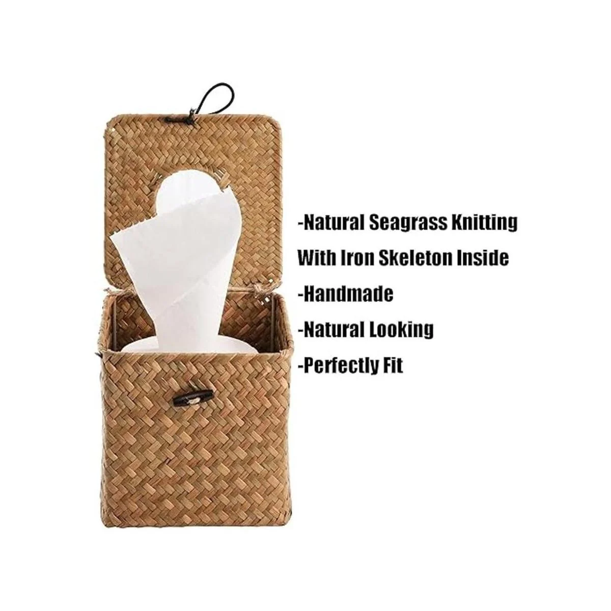 Yesland La caja cuadrada de pañuelos faciales está hecha de hierba marina natural. Tejido con esqueleto de hierro en el interior, 100 hecho a mano.