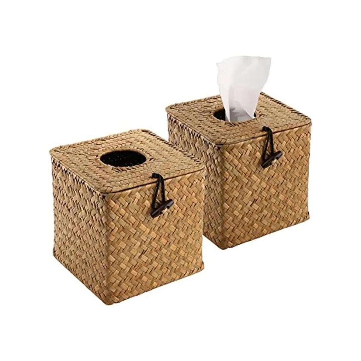 Yesland Paquete de 2 cajas cuadradas de pañuelos faciales de algas marinas, soporte decorativo de papel tejido, funda de caja de pañuelos de ratán de 5 x 5 x 5 pulgadas