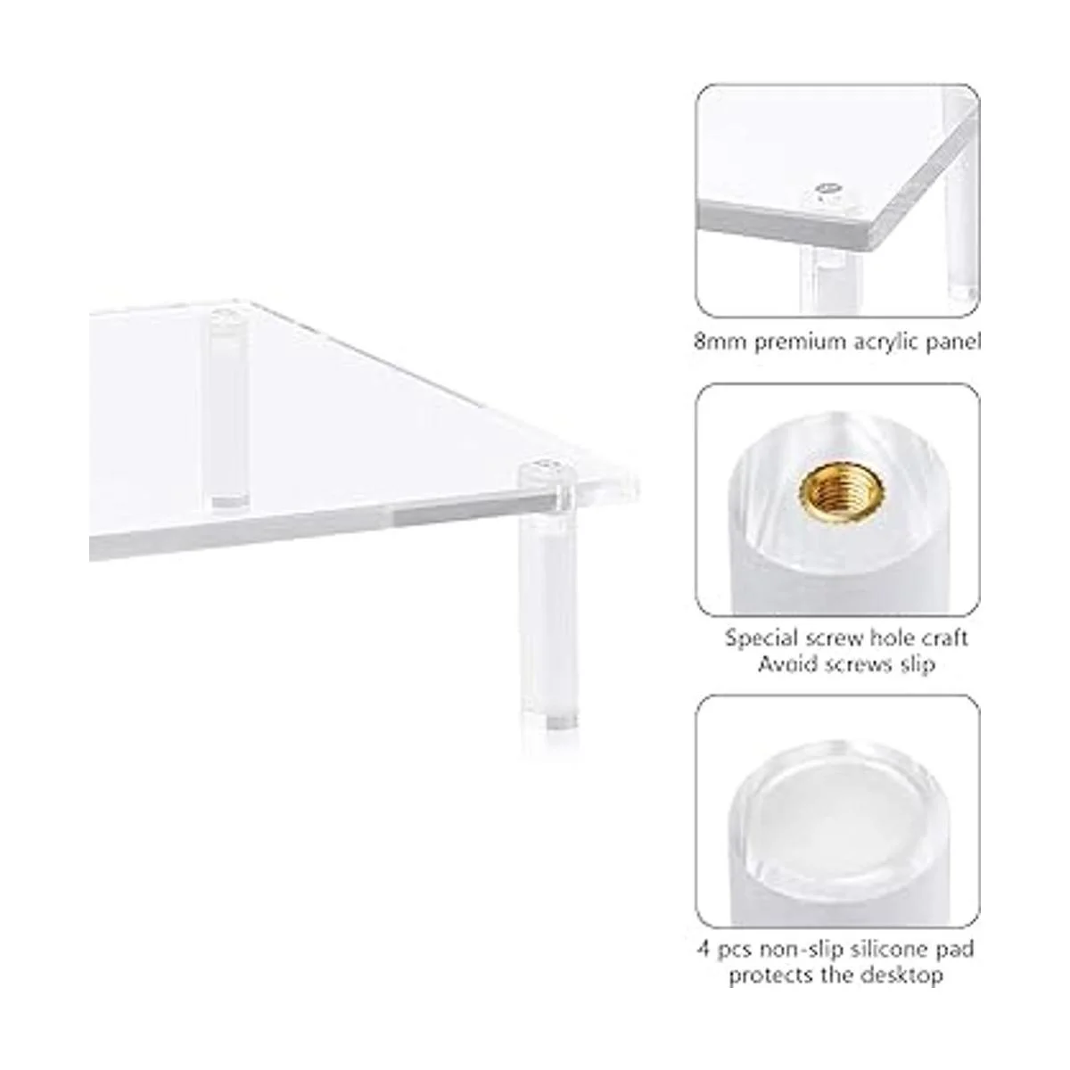Fácil de montar: nuestro soporte acrílico para monitor viene con 1 plataforma y 4 patas, instalación sin herramientas, fácil de hacer en un minuto.