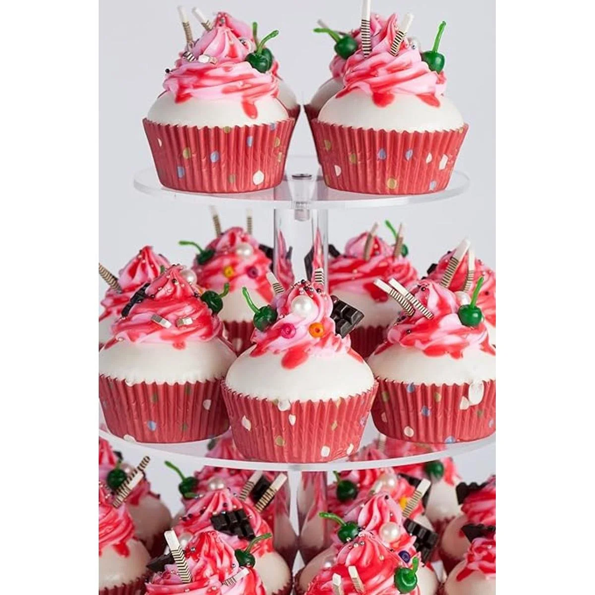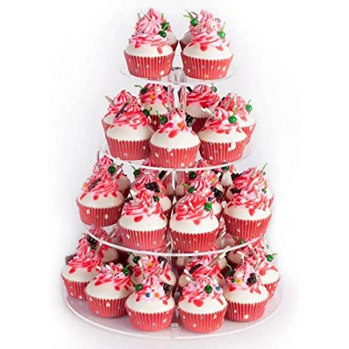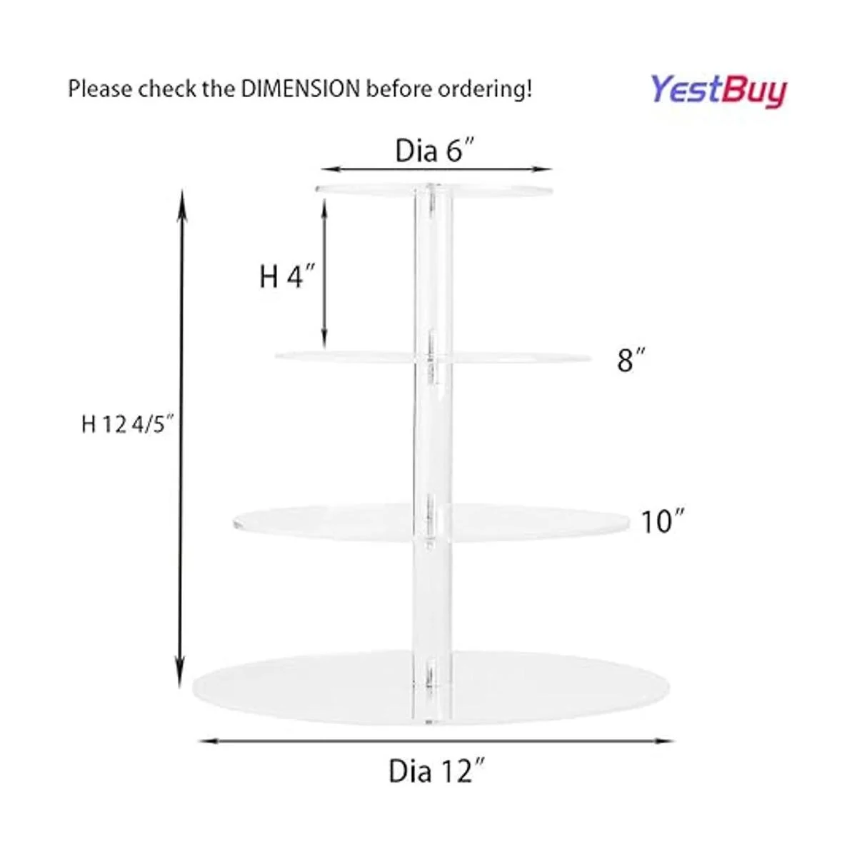 YestBuy Soporte redondo para cupcakes de acrílico de 4 niveles con base, soporte para cupcakes de alta calidad, exhibición de torre de cupcakes de acrílico para decoración de fiesta, exhibición para pasteles 4 pulgadas entre 2 capas