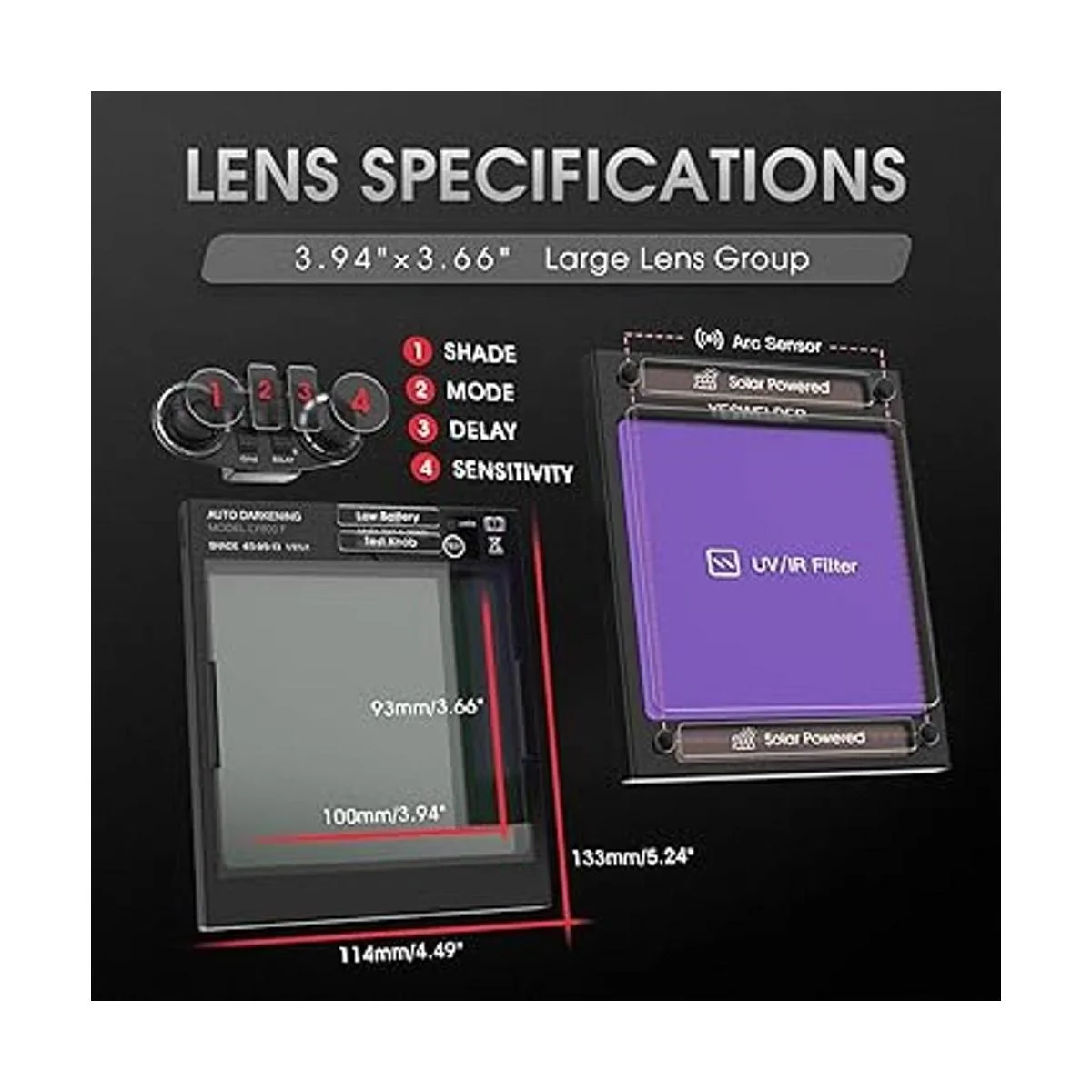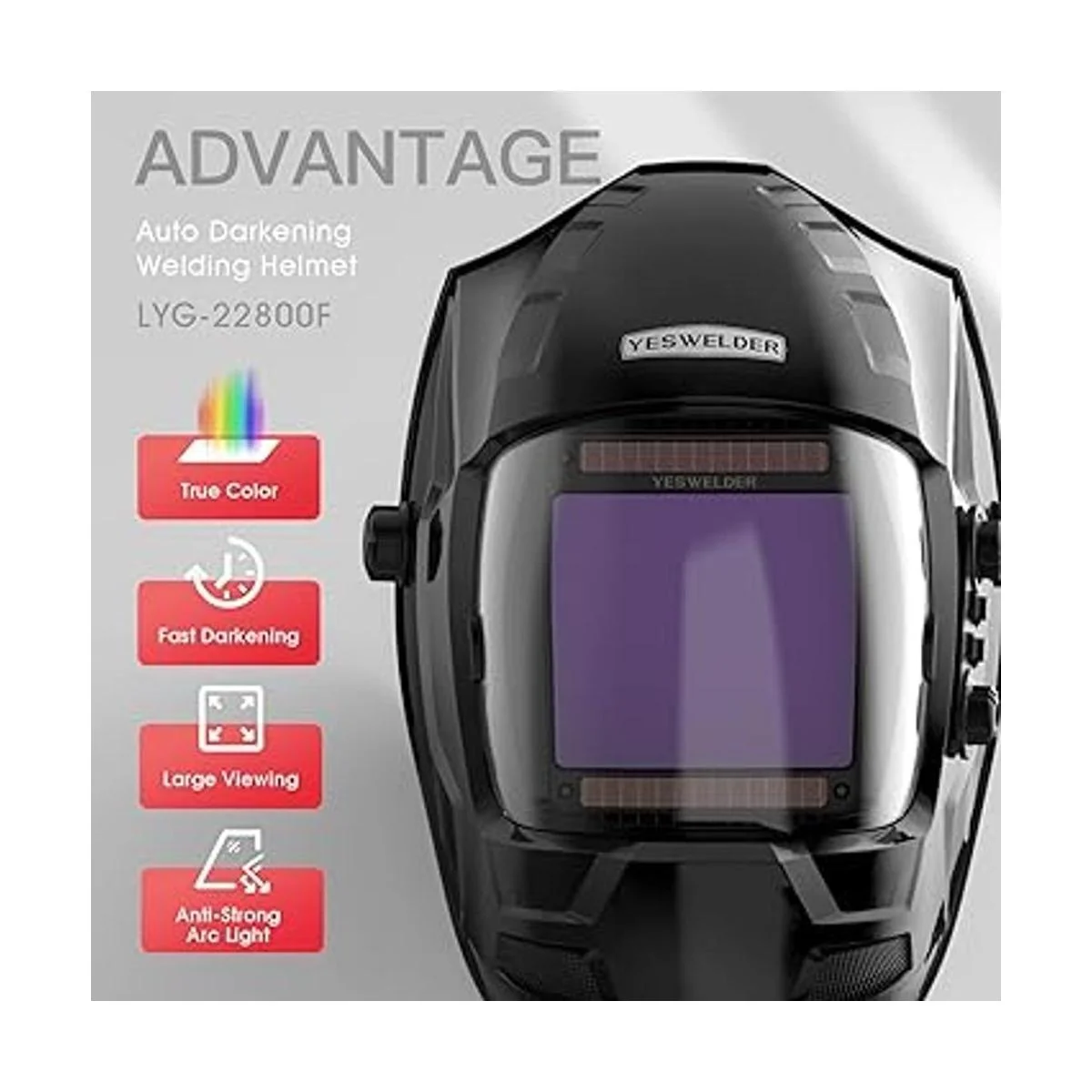 YESWELDER Casco de soldadura de oscurecimiento automático con pantalla de visión grande, con 4 sensores de arco, pantalla ancha de 4 59913 para soldadura de arco TIG MIG