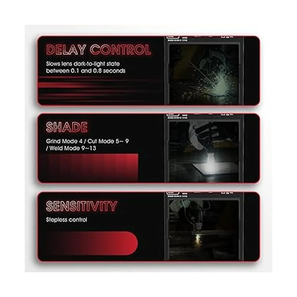 YESWELDER Casco de soldadura plateado con visión lateral, con sensor de arco de 4 sensores de arco, pantalla ancha 459913, para TIG MIG ARC molienda plasma LYGQ800DA