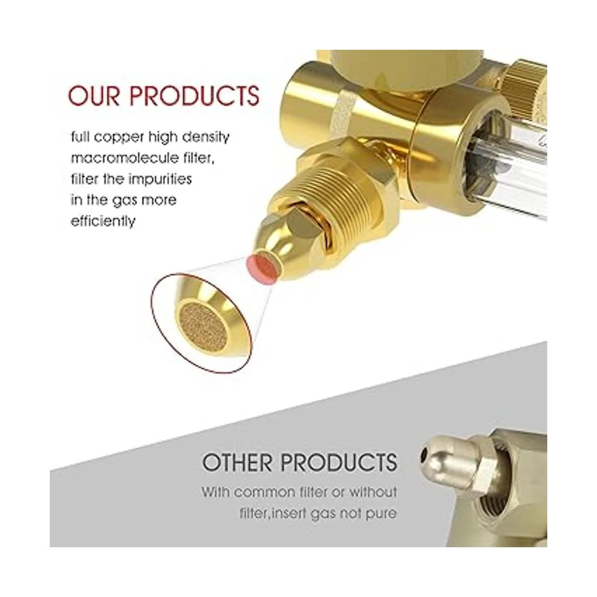Amplia aplicación: tiene ajuste de tanque CGA 580 por lo que se atornilla directamente en los tanques de argón, argón/CO2. Elección ideal para la industria de soldadura MIG TIG, química y electrónica