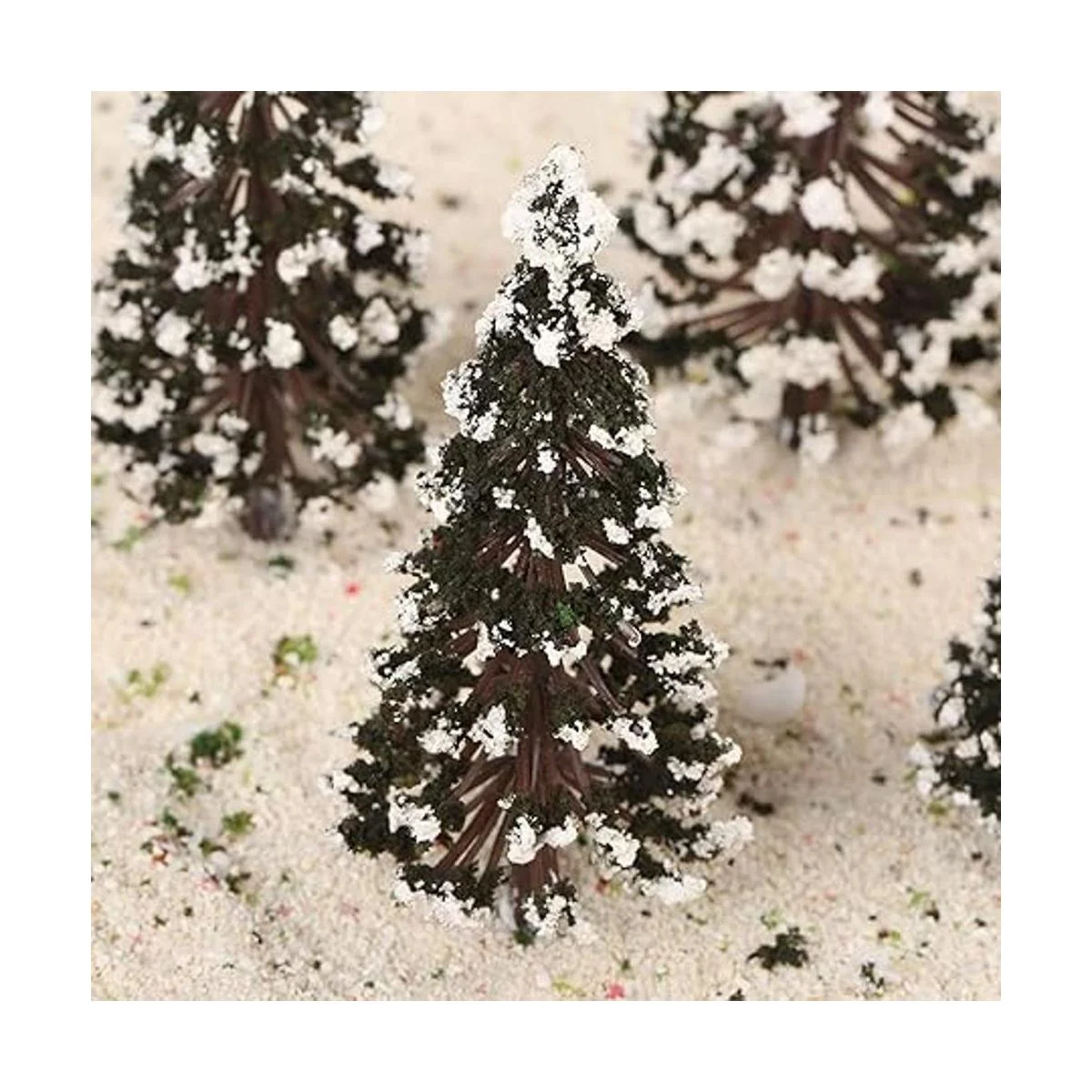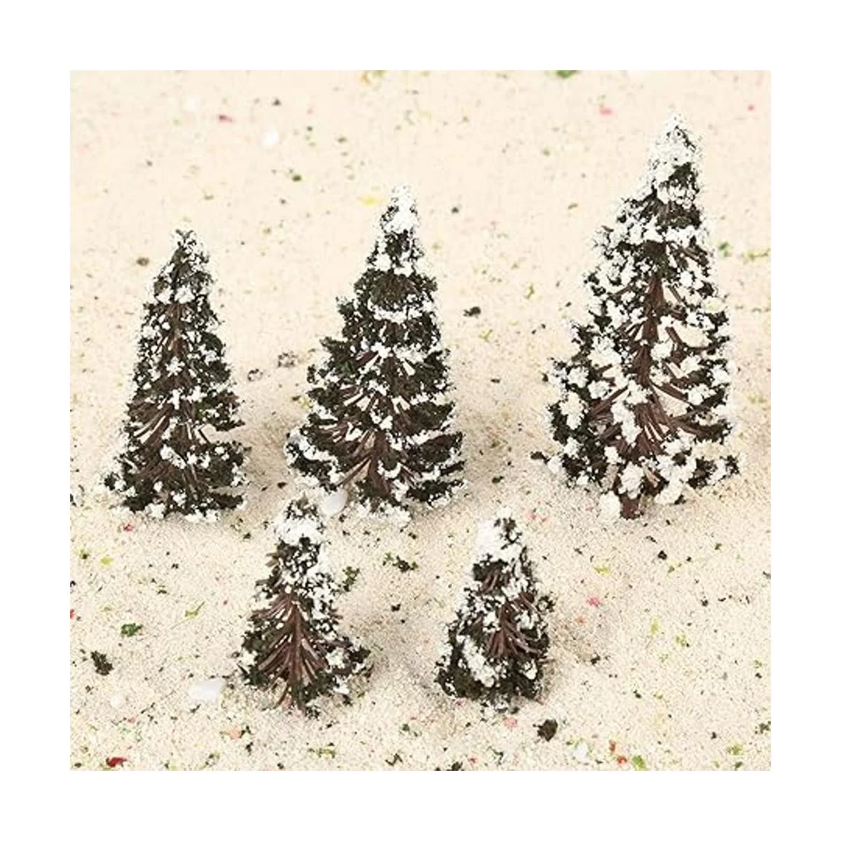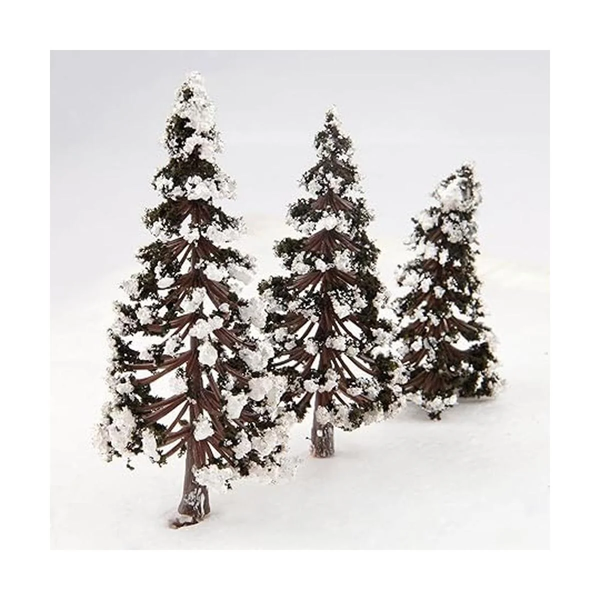 Un paquete de 16 árboles de modelo de paisaje con hojas verdes negras y algo de nieve en varias alturas.