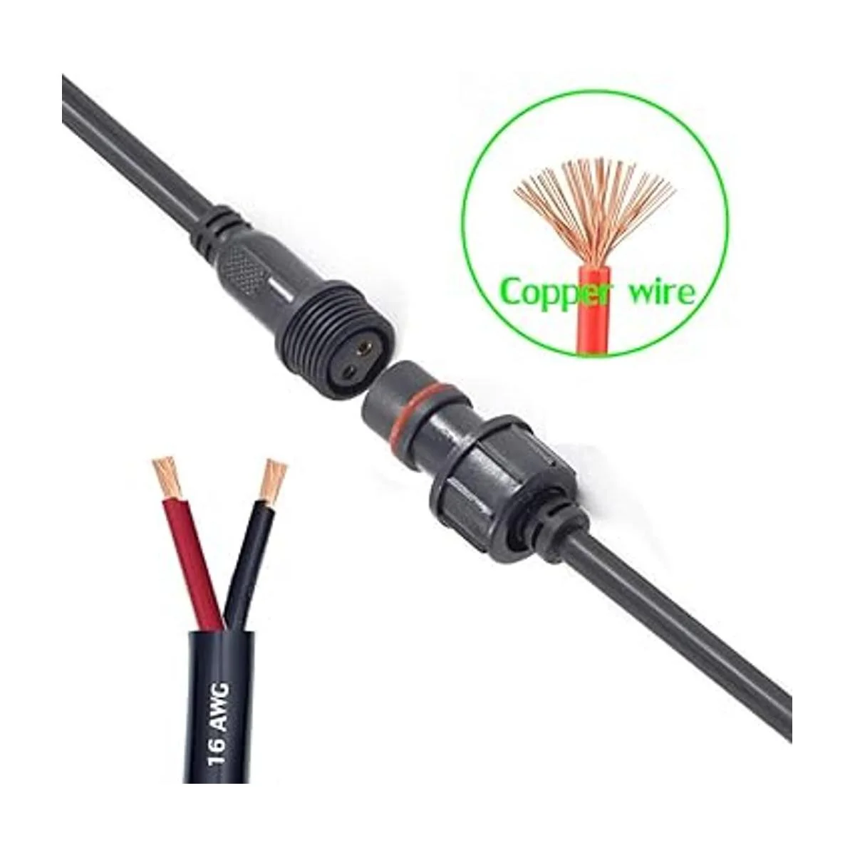 YETOR Cable de extensión impermeable de 2 pines, cable de extensión impermeable de 16 AWG, cable de extensión IP68 para focos solares, luces de estaca de jardín, tira de luces LED 9.84 pies