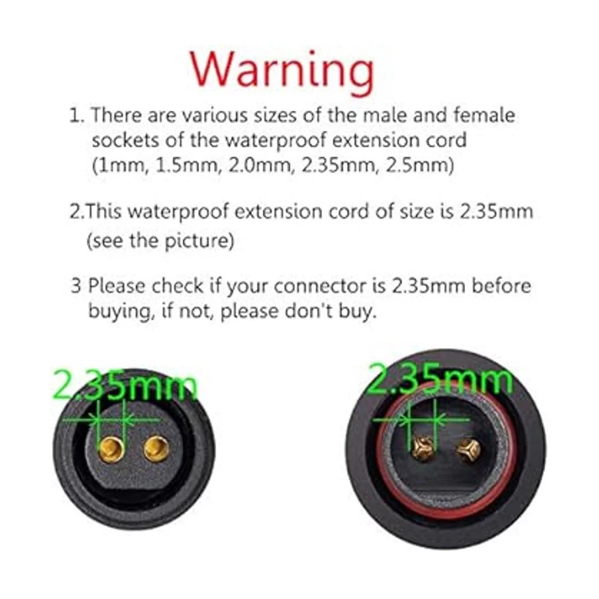 Especificaciones: cable de extensión impermeable de 2 pines, con cable de extensión de 16 AWG. Conector impermeable de 2 pines 7.9 in